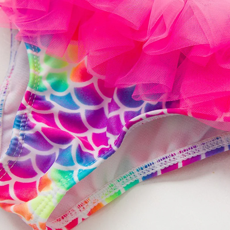 One-piece girls swimsuit, fish scales Designed with a cute ruffle hips.