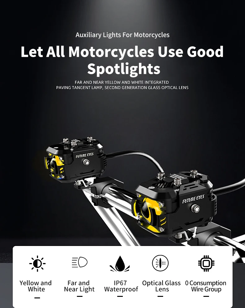 Color: Lavender, Ships From: CHINA - Future Eyes F150 Motorcycle Led Spotlight 6000 LM Electric Vehicle Auxiliary Road Far And Near Light Tangent Light Flashing Lens
