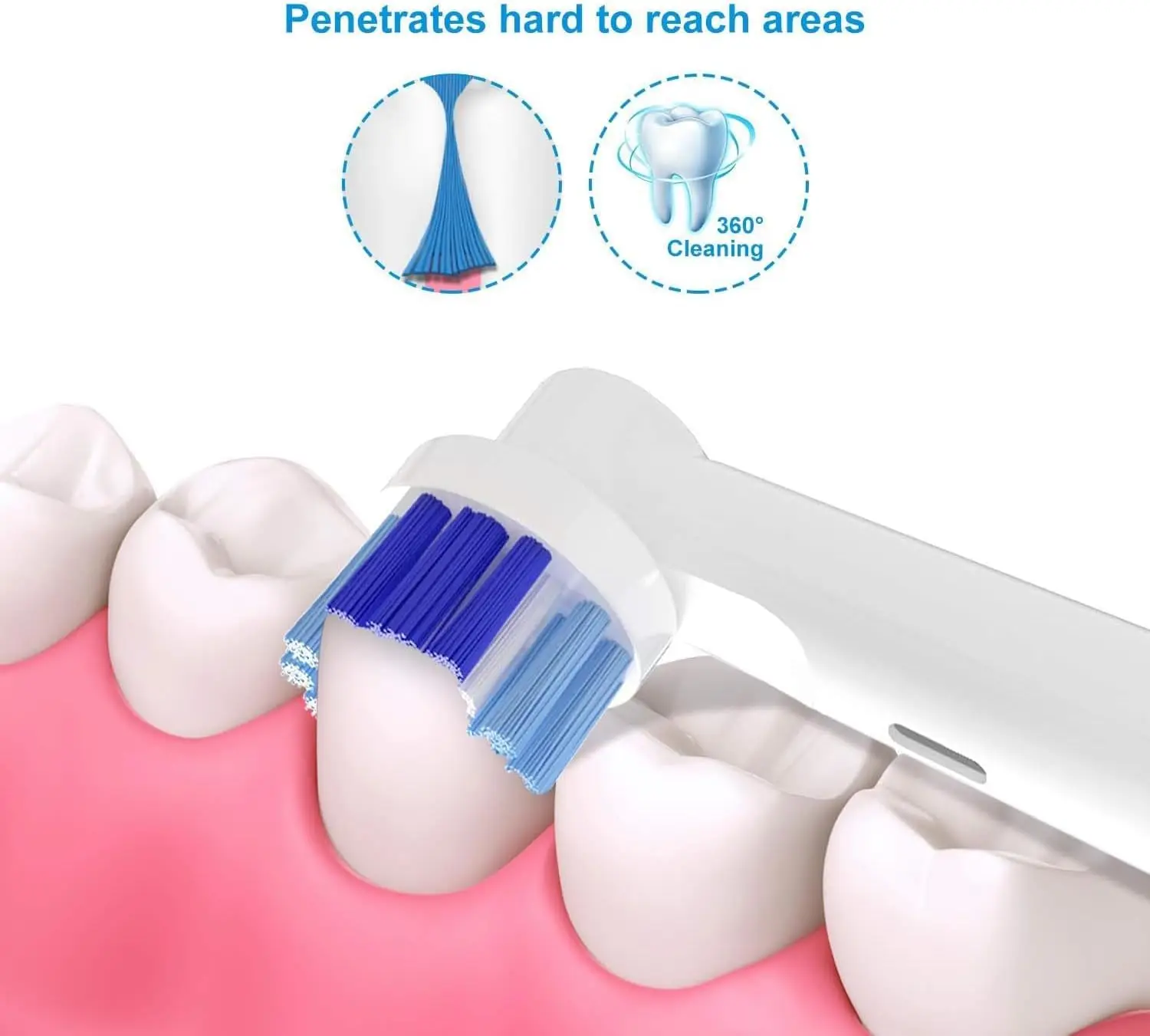 DEEP CLEANING- Precisely angled electric toothbrush bristles are set at 16 degrees to reach deep between teeth and remove more plaque vs a regular manual action toothbrushes.