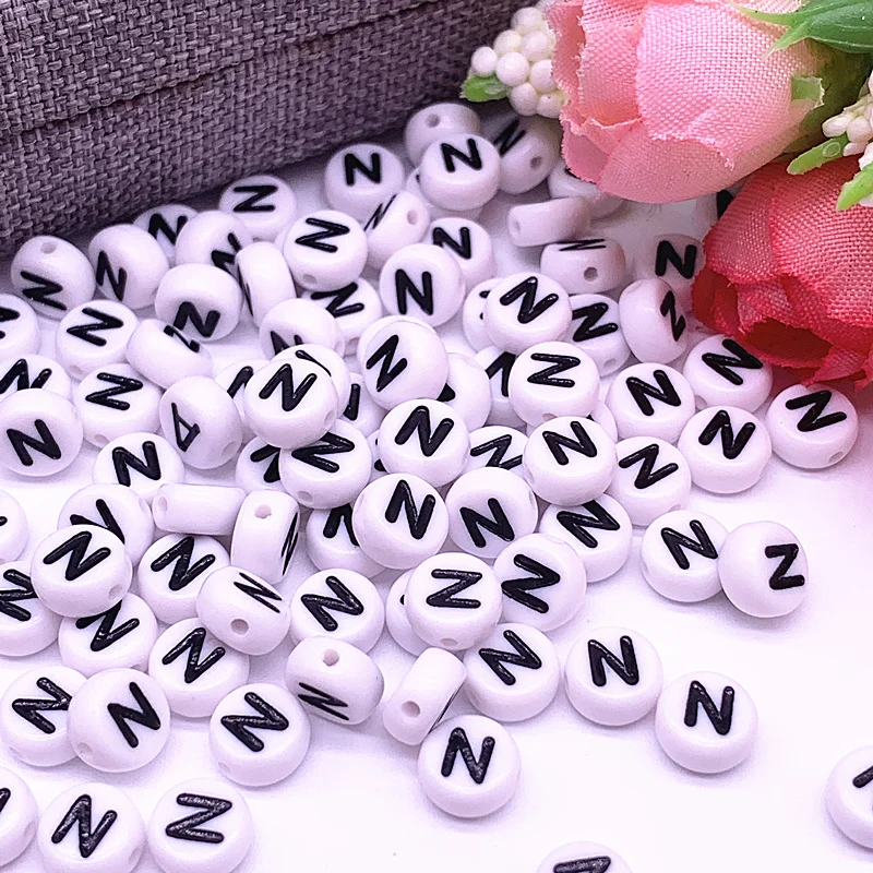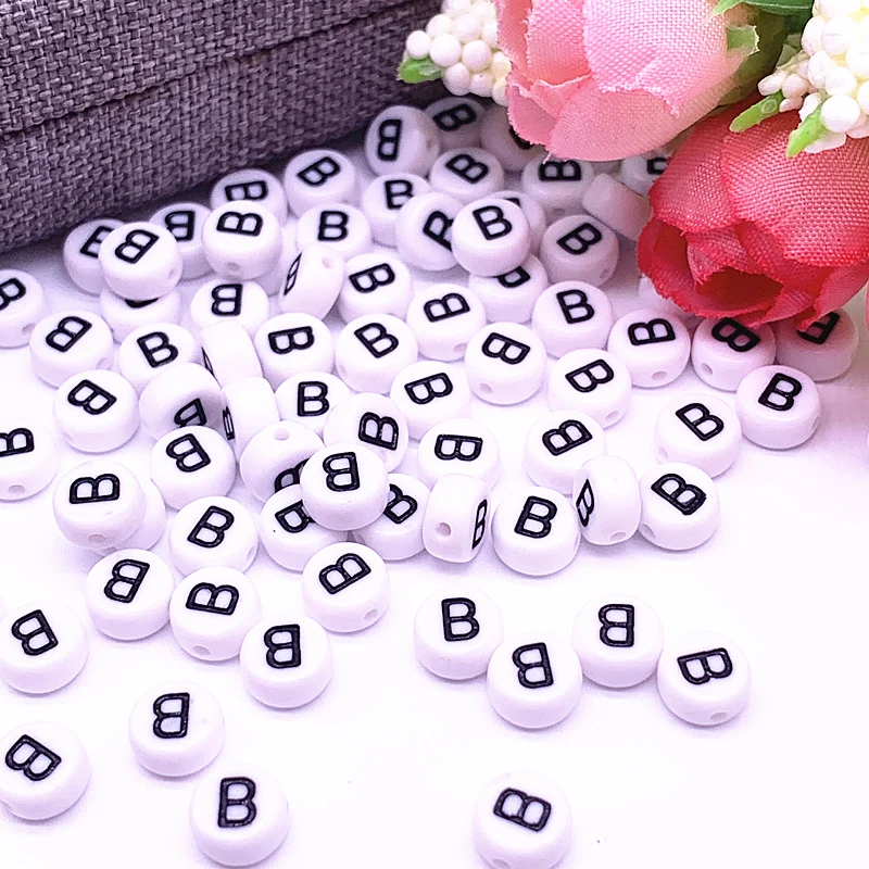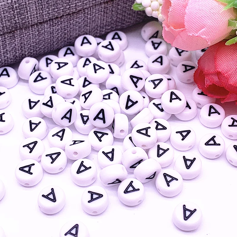 Color: Lemon yellow - 100pcs/lot 7x4mm 26 Letter Beads Round Shape Beads Alphabet Letter Charms for Make Jewelry Accessories