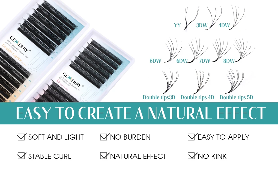 Color: Lighet Green, Curl: D, Thickness: 0.07mm, Length: 10mm, Ships From: CHINA - Gemerry YY Shaped Eyelash Extension Automatic Flowering W Shape Bloom 3D 4D 5D 6D 8D Premade Fans Eyelash Makeup Volume Lashes