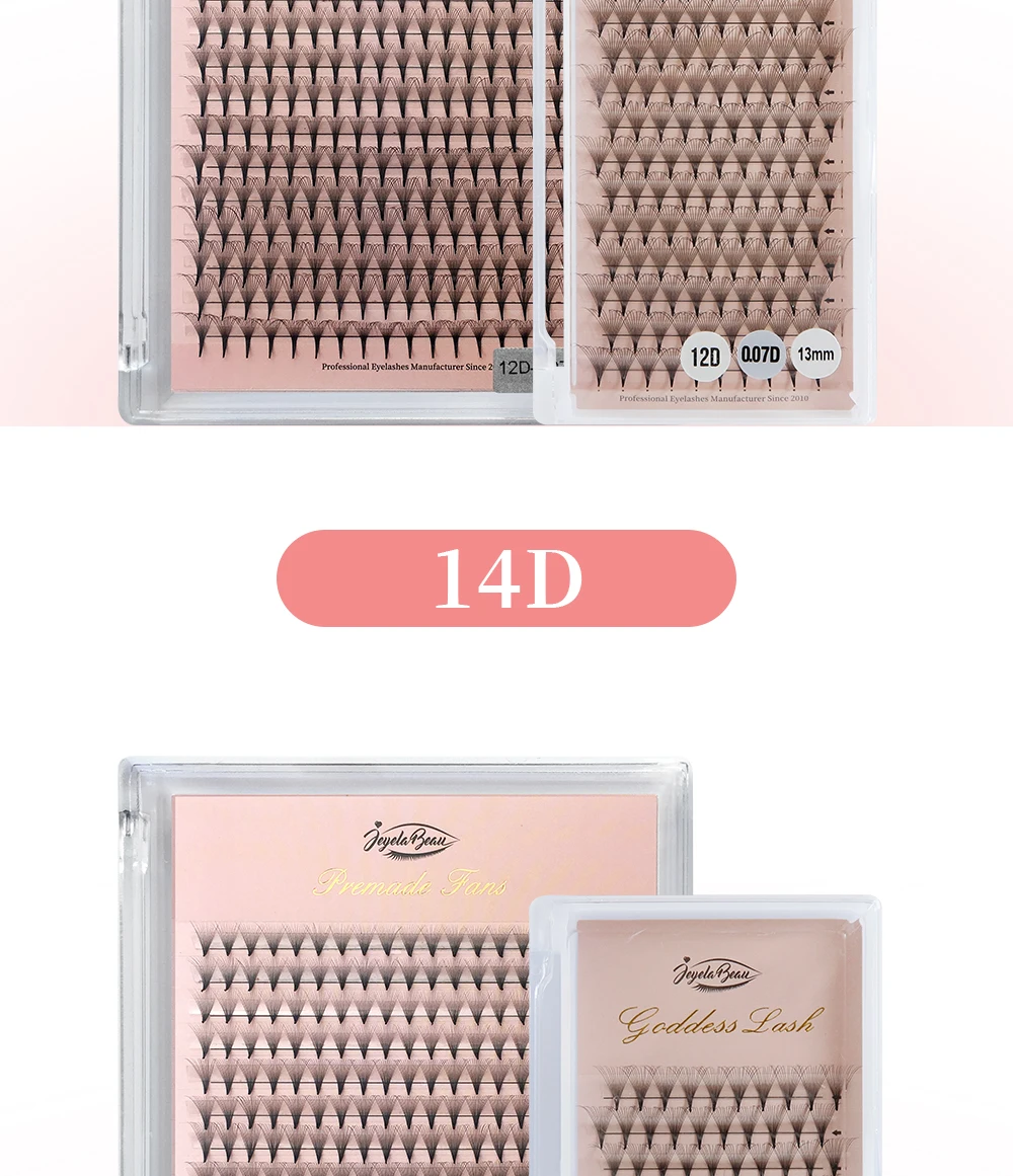 Color: Light Blue, Curl: C, Thickness: 0.07mm, Length: 14mm, Ships From: CHINA - Goddess Premade Volume Fans 5D 6D 10D 12D 14D 16D 20D Individual Lashes Extension Pointy Stem Russian Volume Fans 120/320 fans