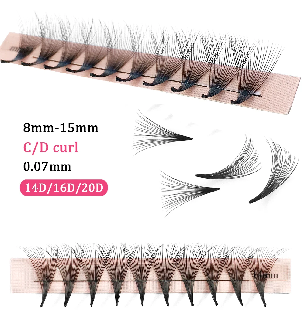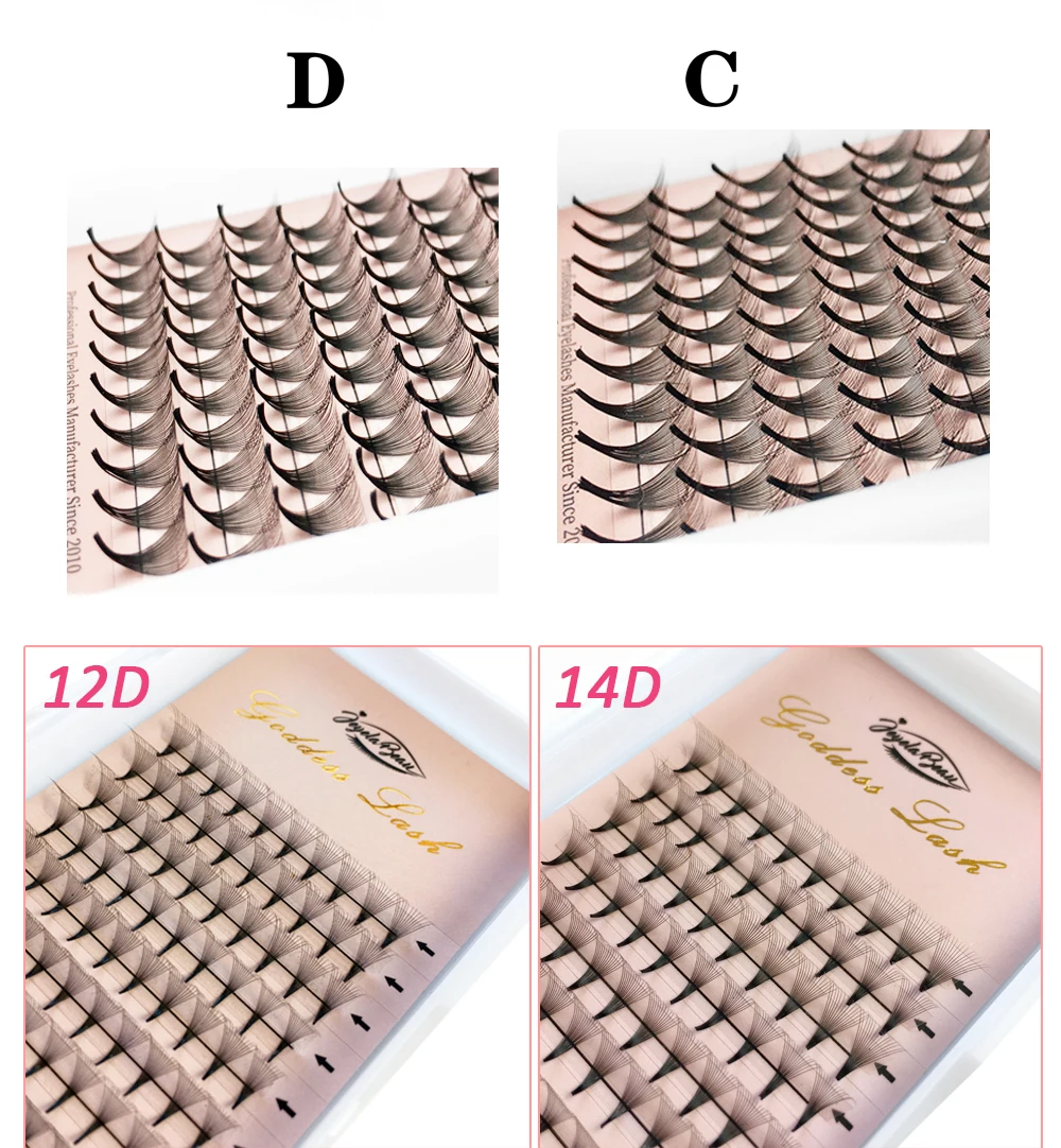 Color: Light Blue, Curl: C, Thickness: 0.07mm, Length: MIX, Ships From: CHINA - Goddess 12D/14D/16D/20D Premade Fan Eyelash Extensions Natural Soft Russian Volume Lashes Faux Mink Individual Lash Extensions