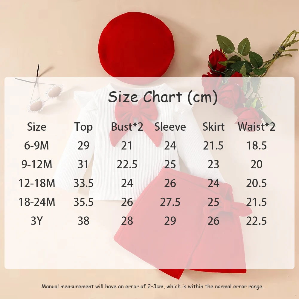 Color: LIGHT BLUE, Kid Size: 24M - Baby Girls Clothes New Year Set 0-3Y Long Sleeve Big Bow Top Irregular Skirt and Beret 3Pcs Toddler Christmas Clothes
