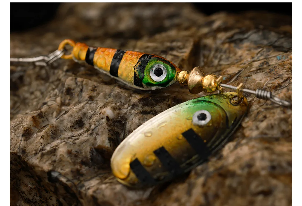 Color: Light Blue - Rotating Metal Spinner Fishing Lures 9.1g 7cm Sequins Iscas Artificial Hard Baits Crap Bass Pike Treble Hook Tackle Accessories