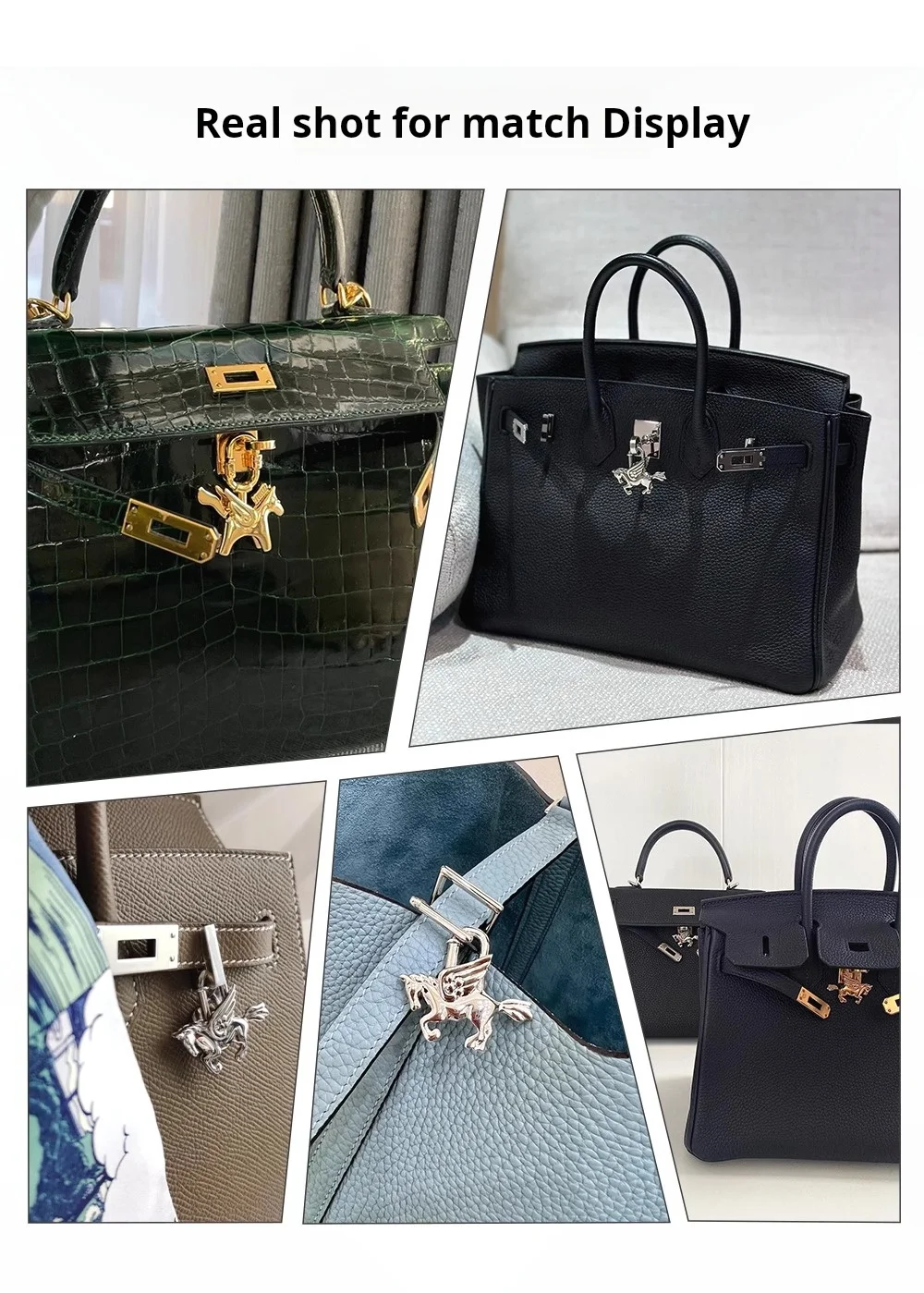Color: Light Gold - Bag Pendant For Birkin Kelly Bag Pegasus Lock Charm All-steel Animal Metal Lock Bag Pendant High-end Charm Necklace
