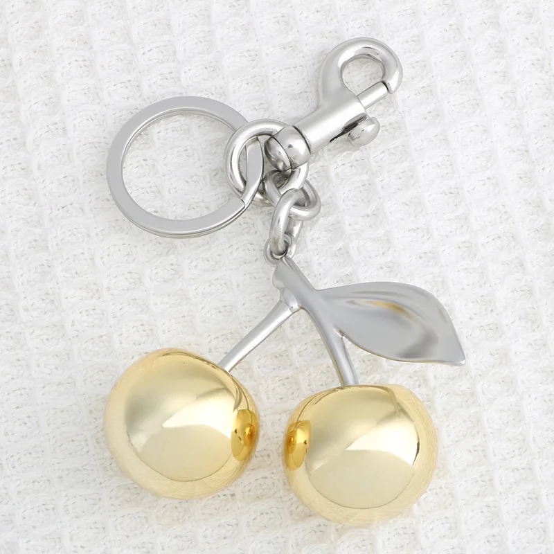 Color: Light Gold - Fashion Glitter Gold Cherry Keychain Summer Fruits Cherries Pendant Keyring For Women Men Jewelry Bag Accessories Gift