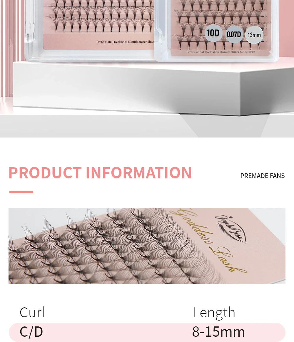 Color: LIGHT GRAY, Curl: C, Thickness: 0.07mm, Length: 8mm, Ships From: CHINA - Goddess Premade Volume Fans 5D 6D 10D 12D 14D 16D 20D Individual Lashes Extension Pointy Stem Russian Volume Fans 120/320 fans