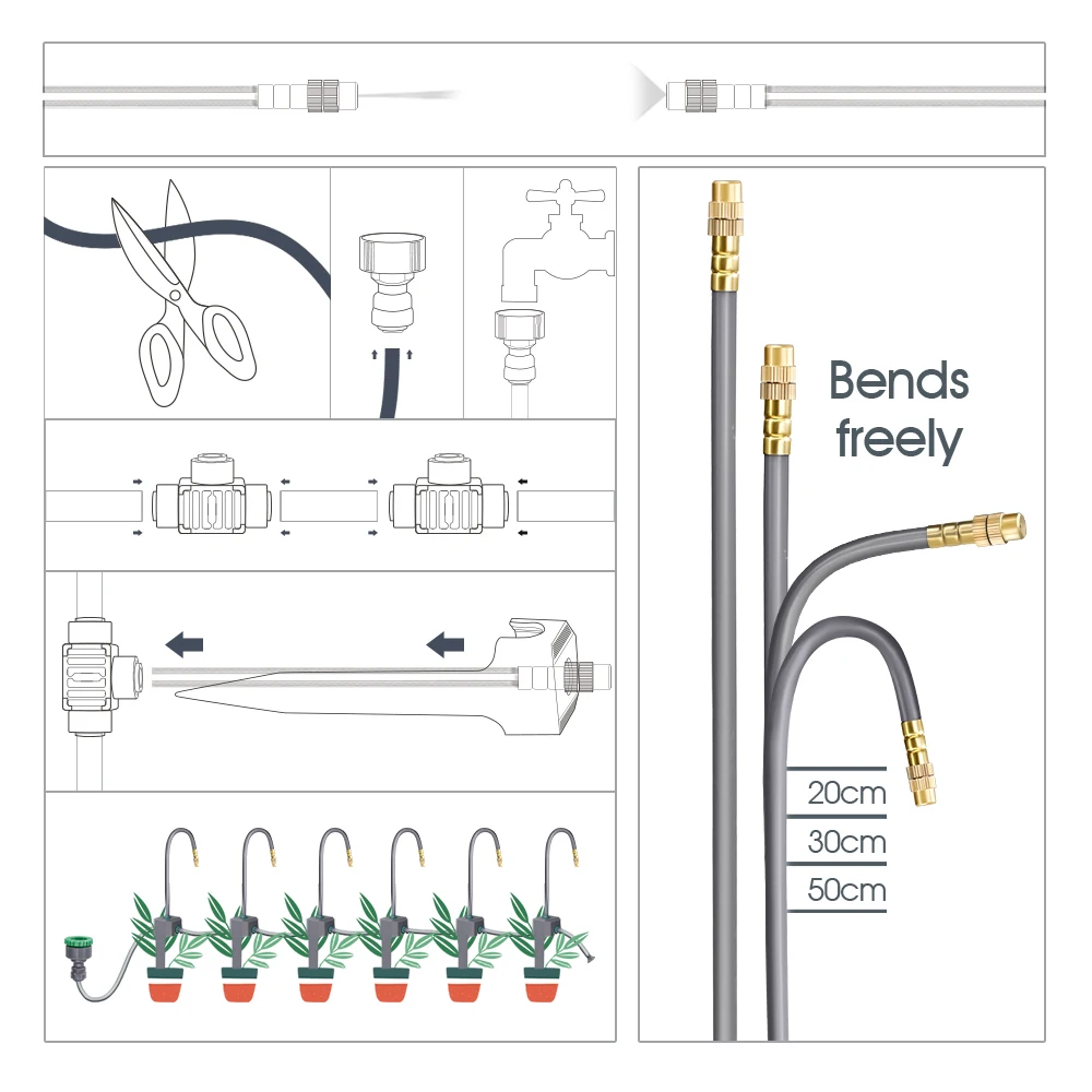 - Name: 20-50CM 360° Free-Bend Fogging Brass Nozzle Cooling Irrigation Landscaping Humidification Sprinkler Flower Vegetable Watering