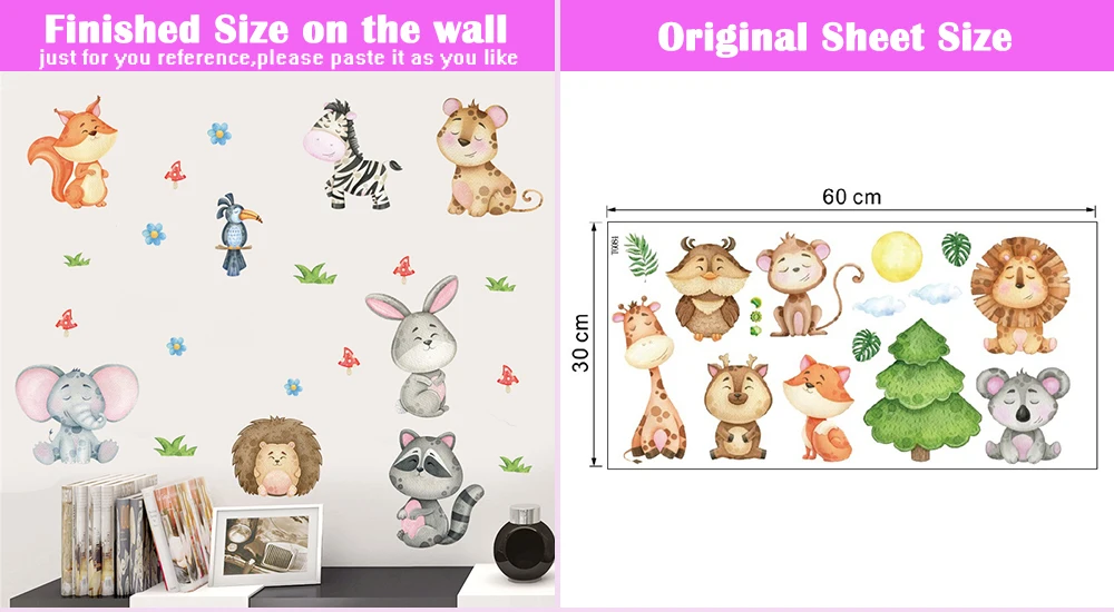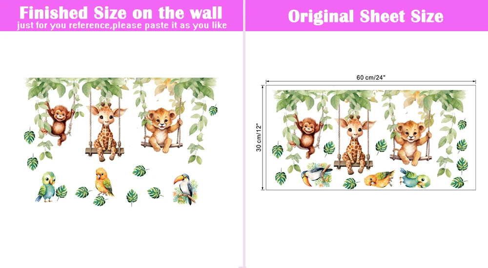 Color: light green - Funny Animals Bird Swinging Wall Stickers Kids Room Decoration Diy Cartoon Monkey Giraffe Lion Mural Art Pvc Posters Home Decals