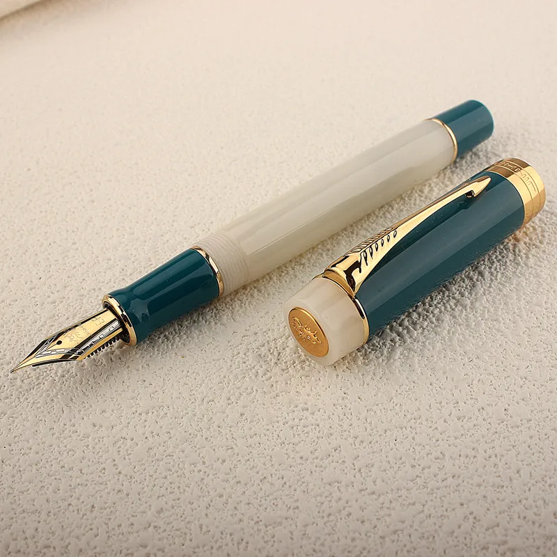 Color: light green, Nib Size: MF - JINHAO 100 Centennial Fountain Pen Resin Gold Clip Nib EF F M Students Pens Business Stationery School Office Supplies PK 9019