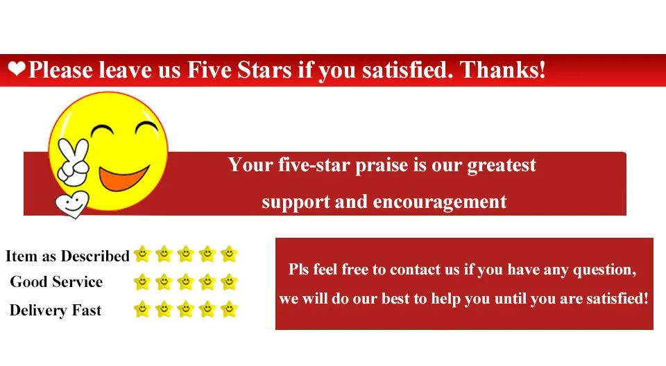 2) Please kindly leave us positive feedback(5 stars) once you're satisfied with your purchase.