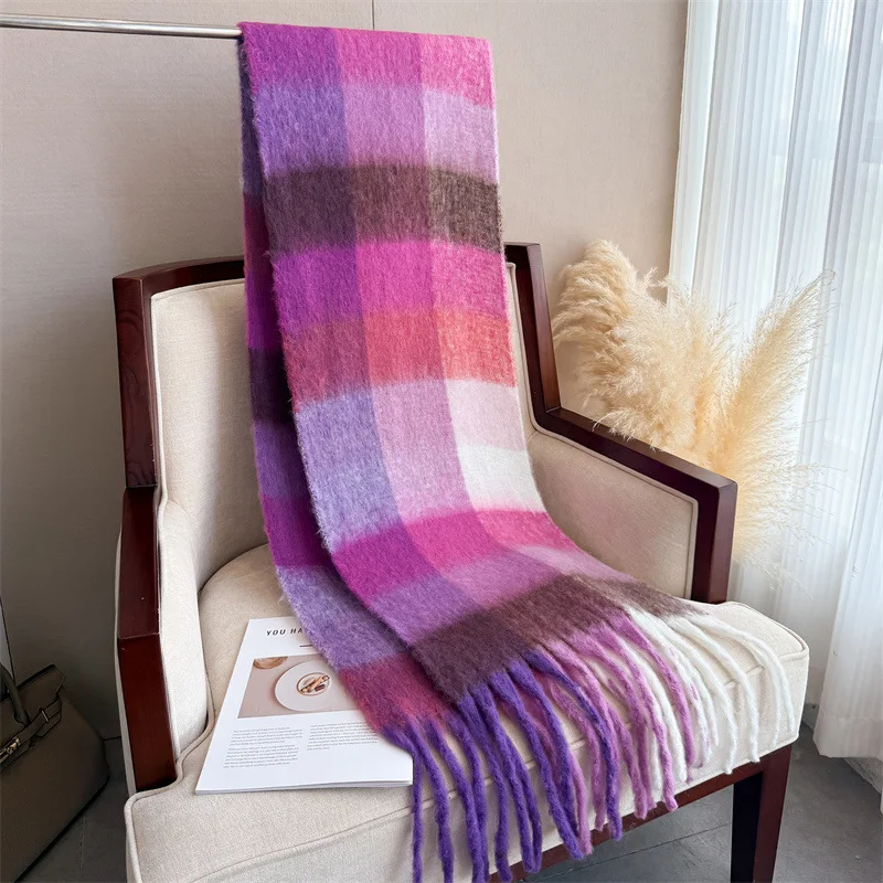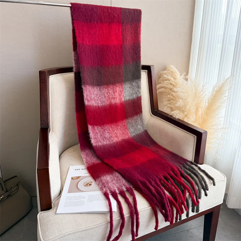 Color: light green, Size: One Size - 2025 NEW Luxury Cashmere Women Plaid Scarf Winter Warm Shawl and Wrap Bandana Pashmina Long Tassel Female Foulard Thick Blanket