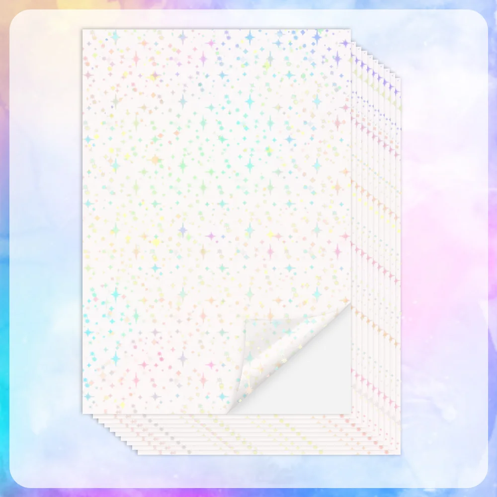 【Holographic Adhesive Film】- The package comes with 10 sheets transparent sticker paper in A4 size, different patterns including, spot, stars, gem, heart, butterfly of what you chose, to make your craft projects more beautiful, sufficient quantity can meet your needs.