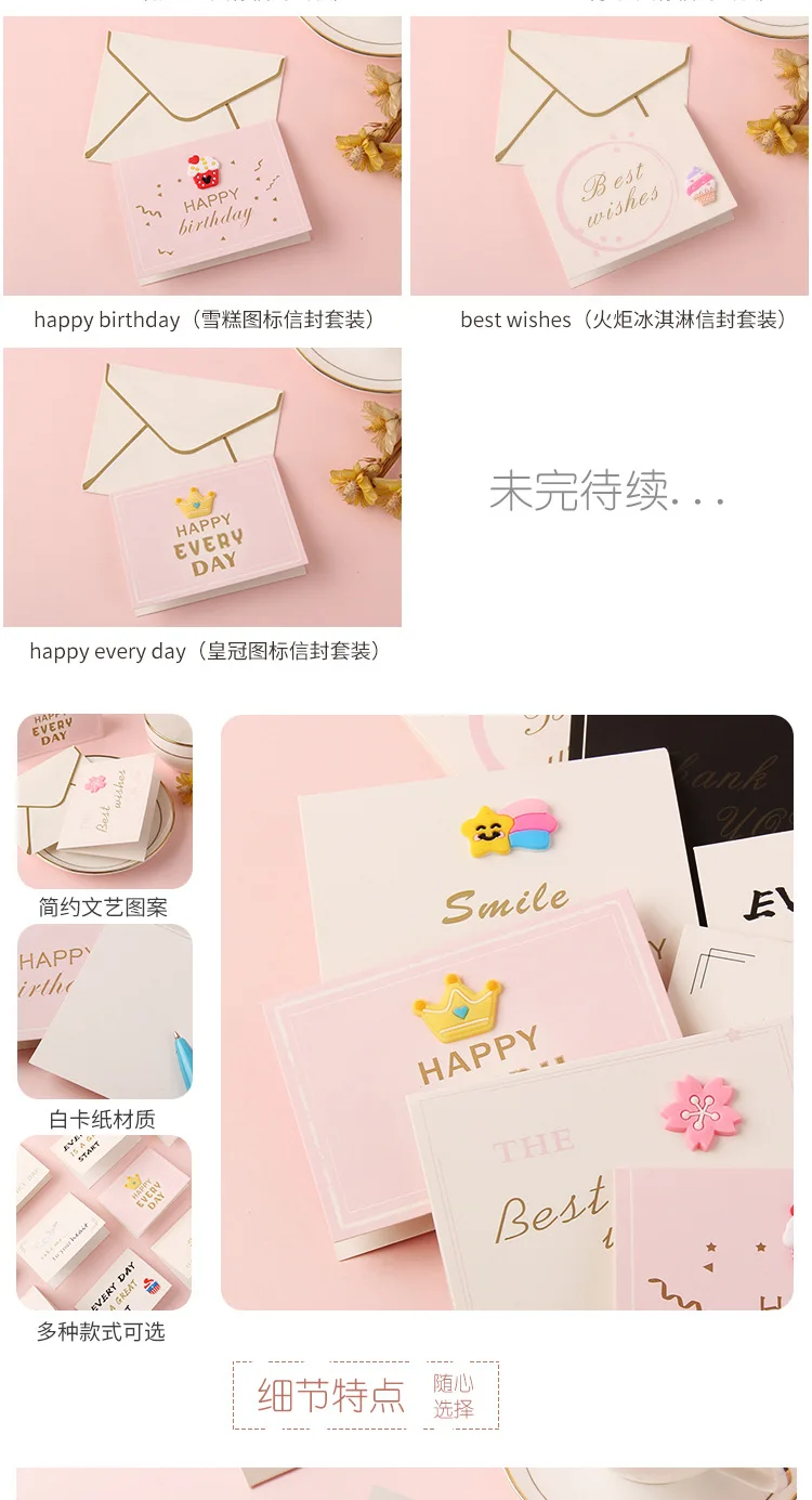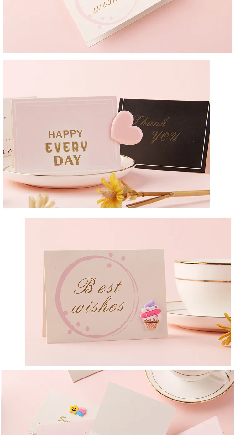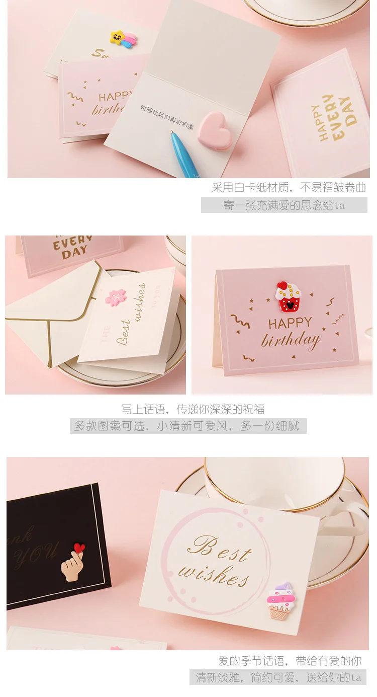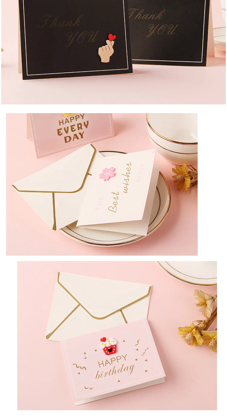 Color: Light Grey - Holiday greeting card Valentine's Day Qixi flower baking birthday thank you message greeting card Invitations Party Supplies