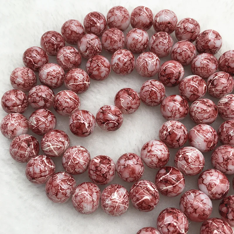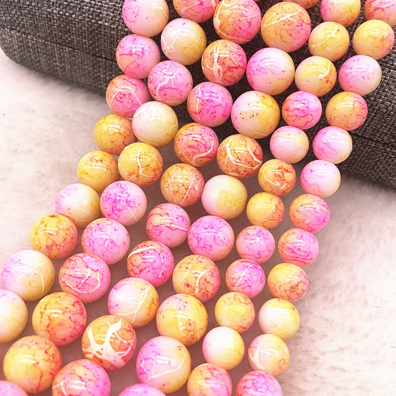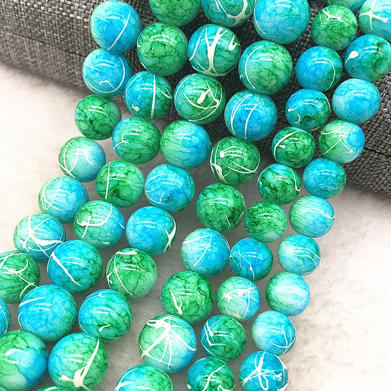 Color: Light Grey, Item Diameter: 4mm - Wholesale 4/6/8/10mm Glass Beads Round Loose Spacer Beads Pattern For Jewelry Making DIY Bracelet Necklace