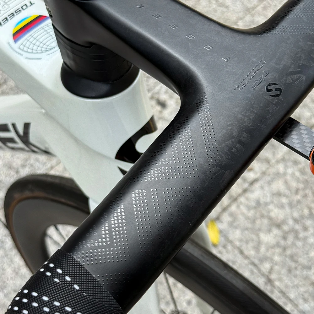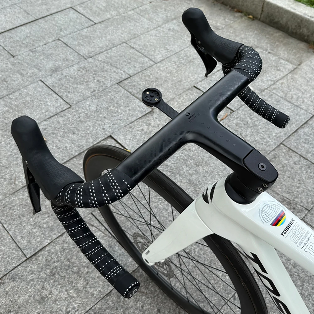 Color: Light Grey - TOSEEK Carbon Handlebar Road Carbon handlebar Drop bar T800 Carbon Integrated Handlebar Di2 Bicycle Accessories Carbon Drop bar