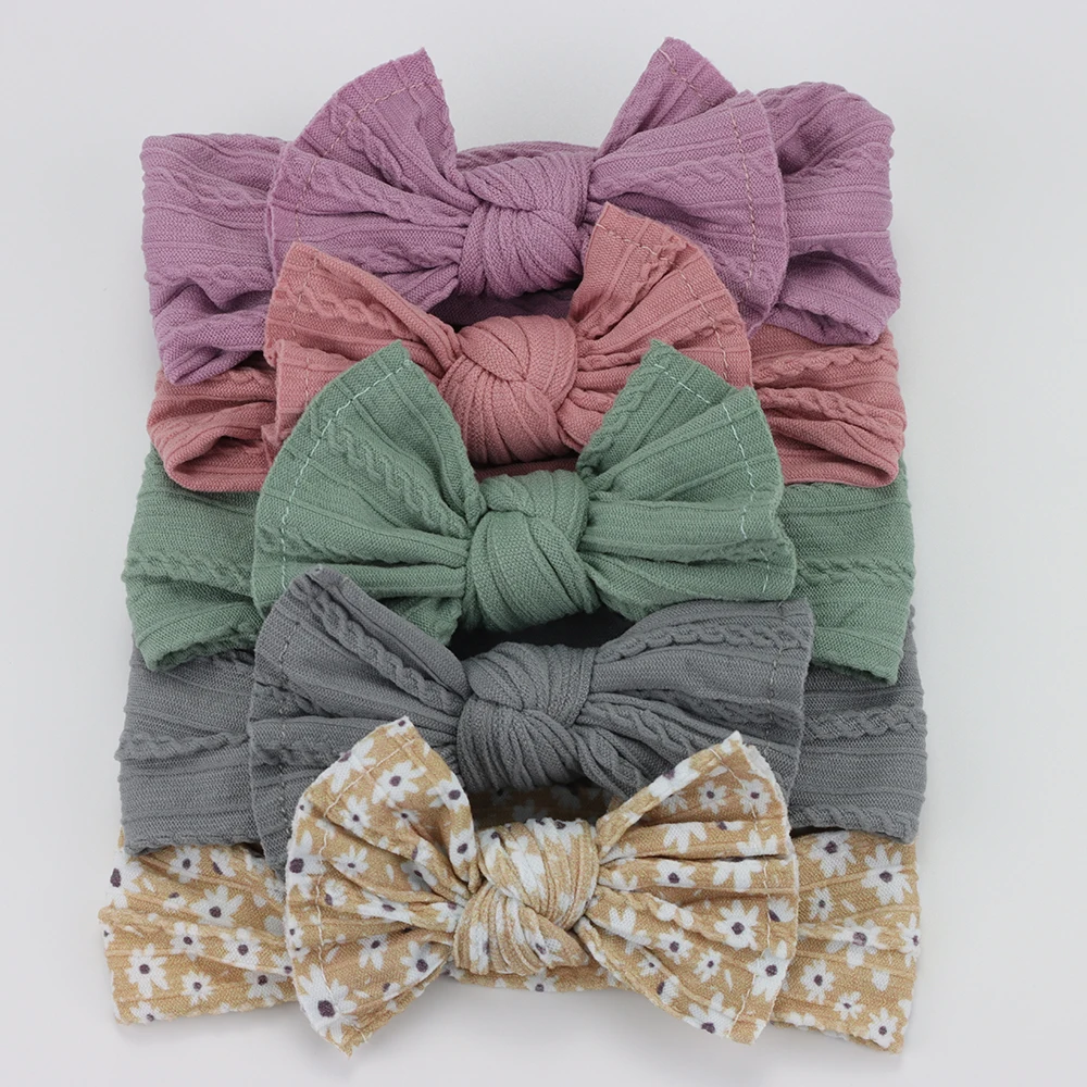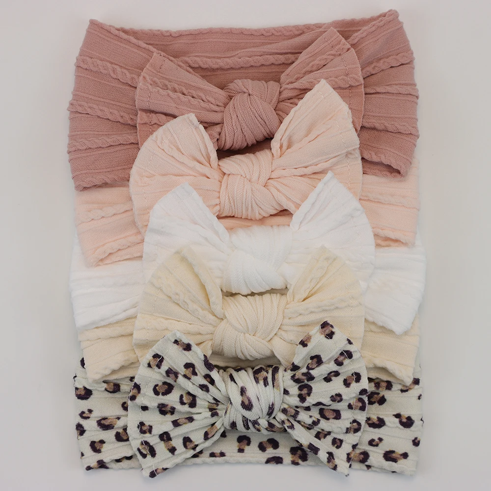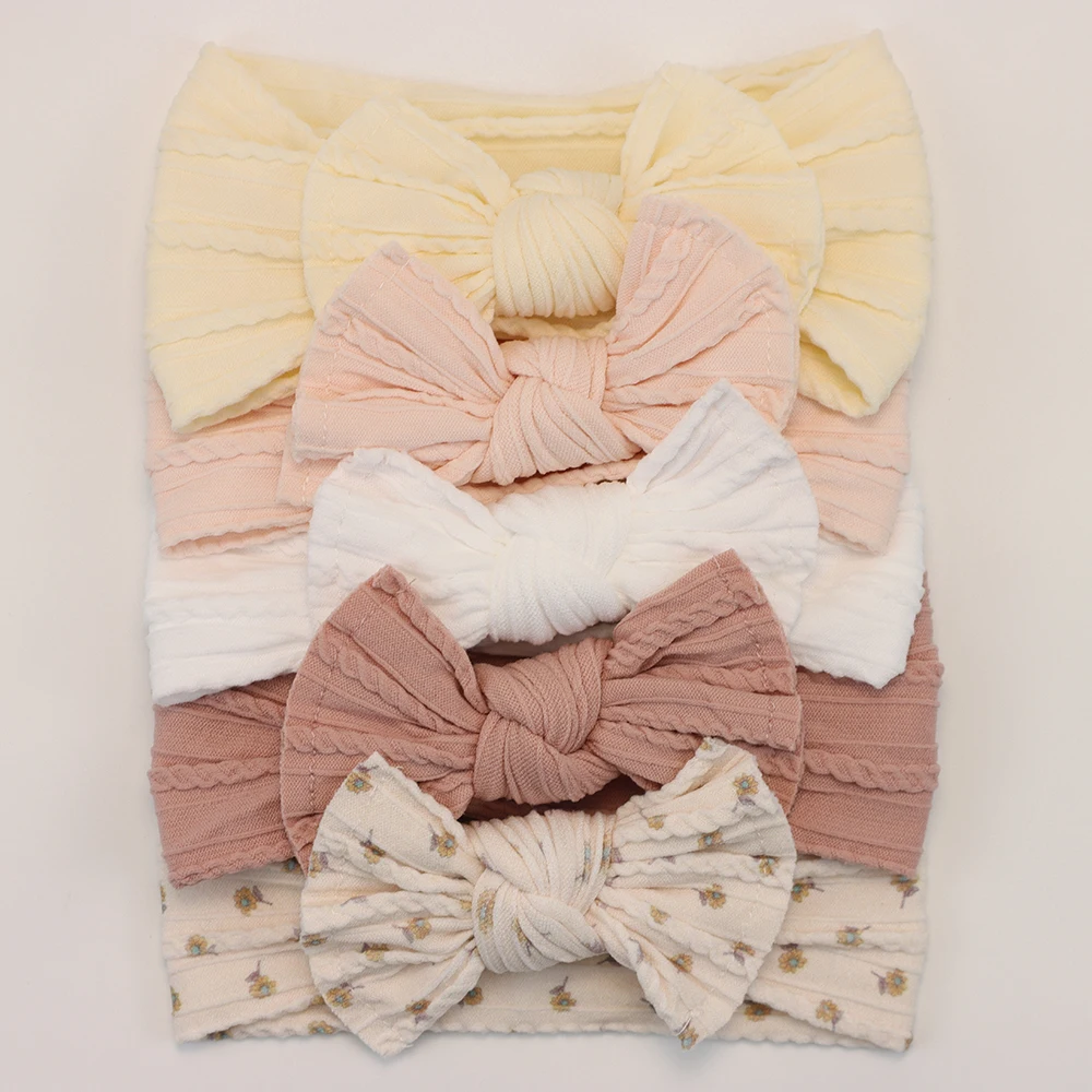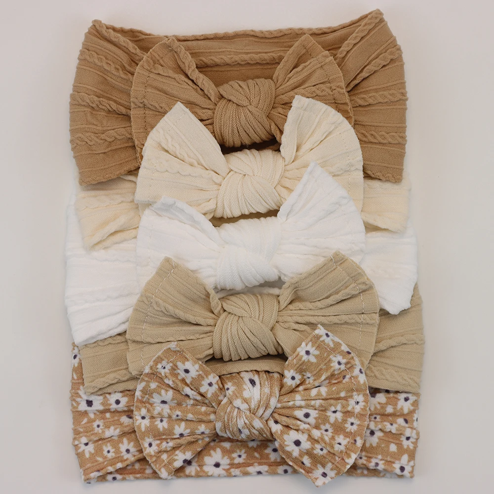Color: Light Khaki - 5pcs/Lot Cable Knit Bow Baby Headbands Elastic Nylon Baby Girl Headband For Children Turban Newborn Infant Kids Hair Accessories