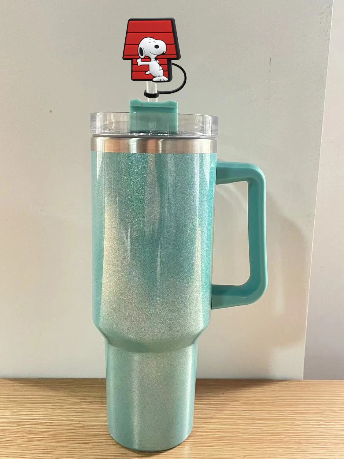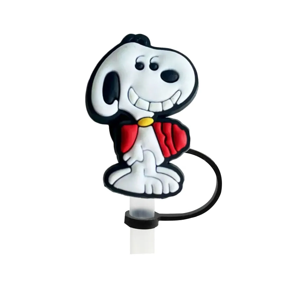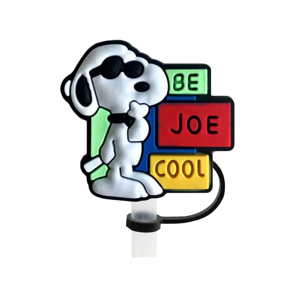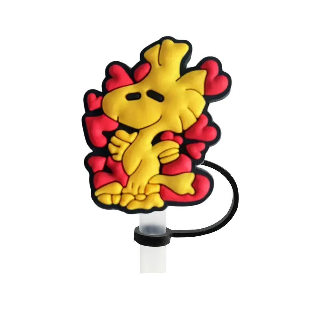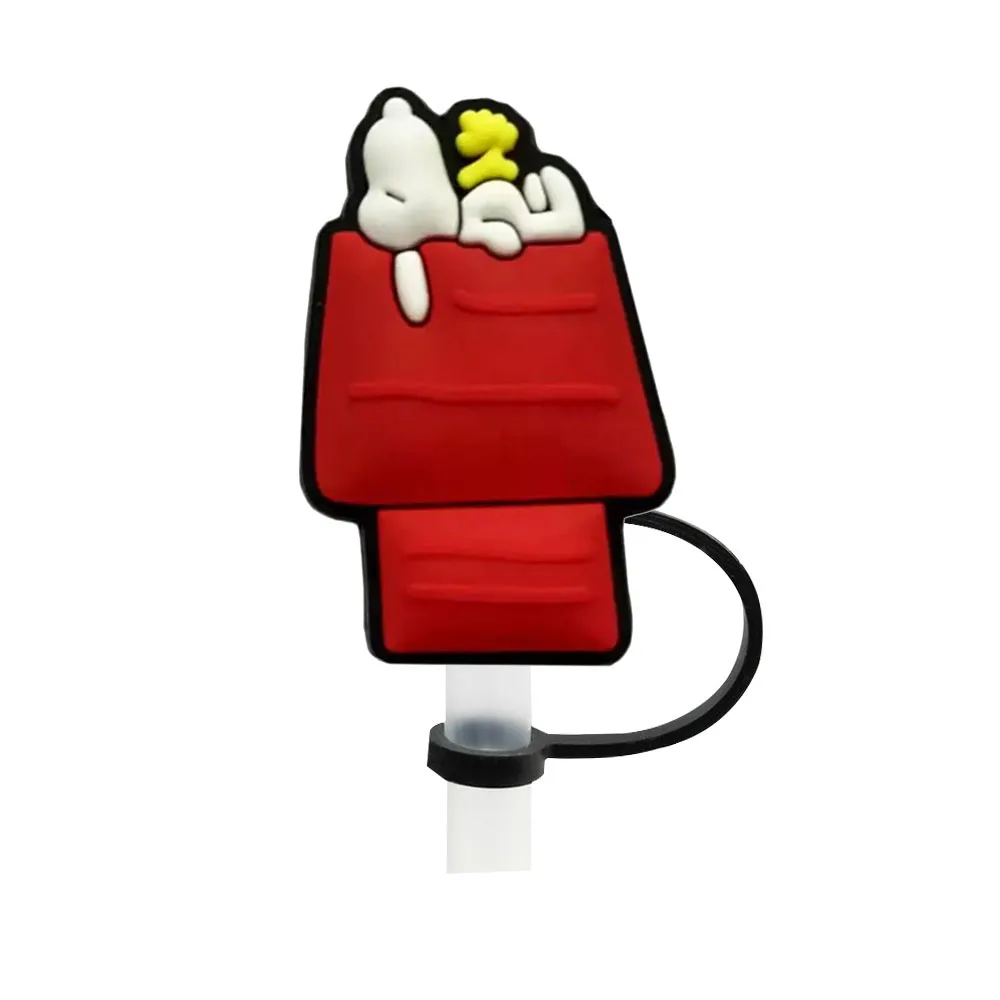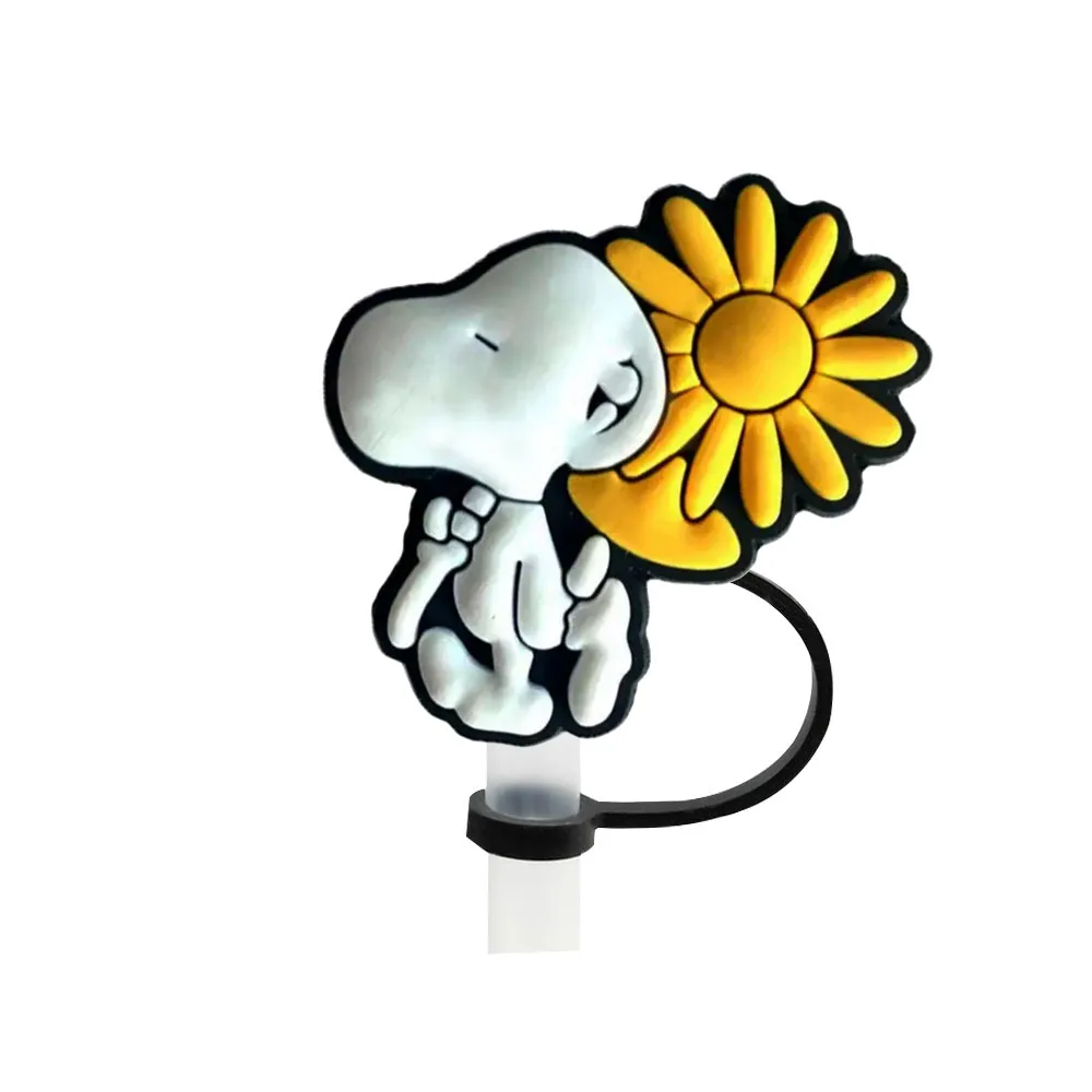 Color: light yellow - 1-12PCS Cute MINISO Snoopy Straw Cover Cap With 30&40Oz Cup10mm Straw Toppers Reusable Dust-Proof Straw Caps Cartoon Drink Stra