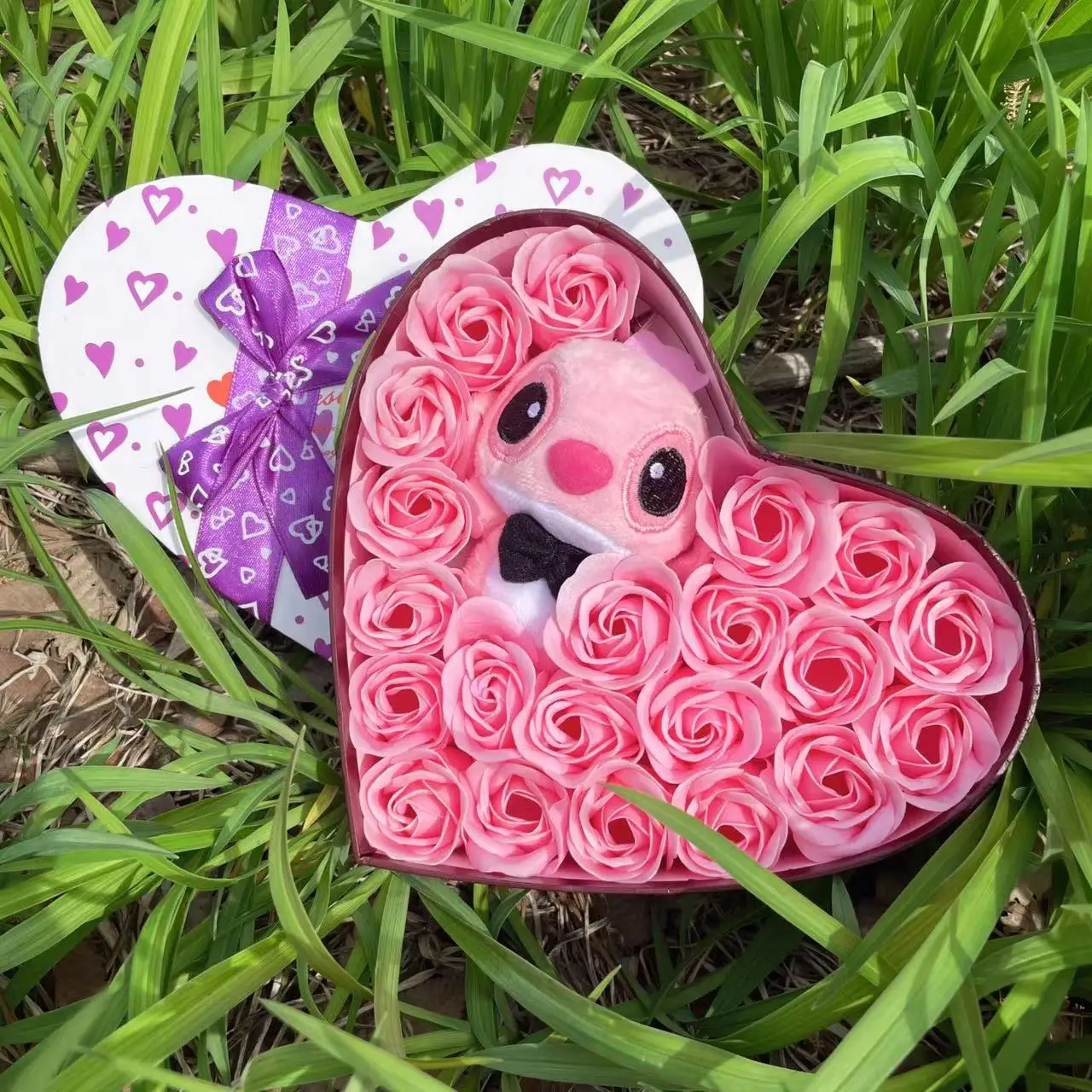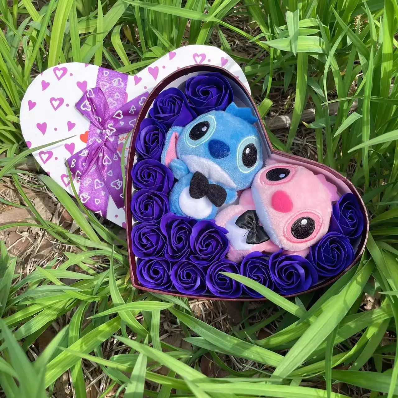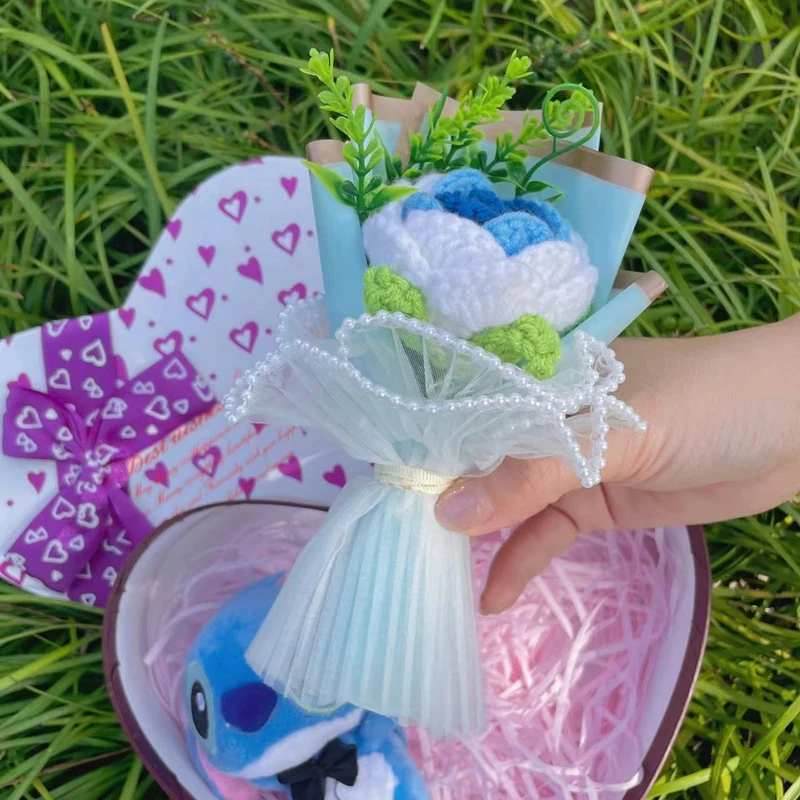 Disney Cartoon Lilo Stitch Plush Doll Toys Rose Bouquet Gift Box Stitch Flower Bouquet Home Decoration Valentine Christmas Gifts