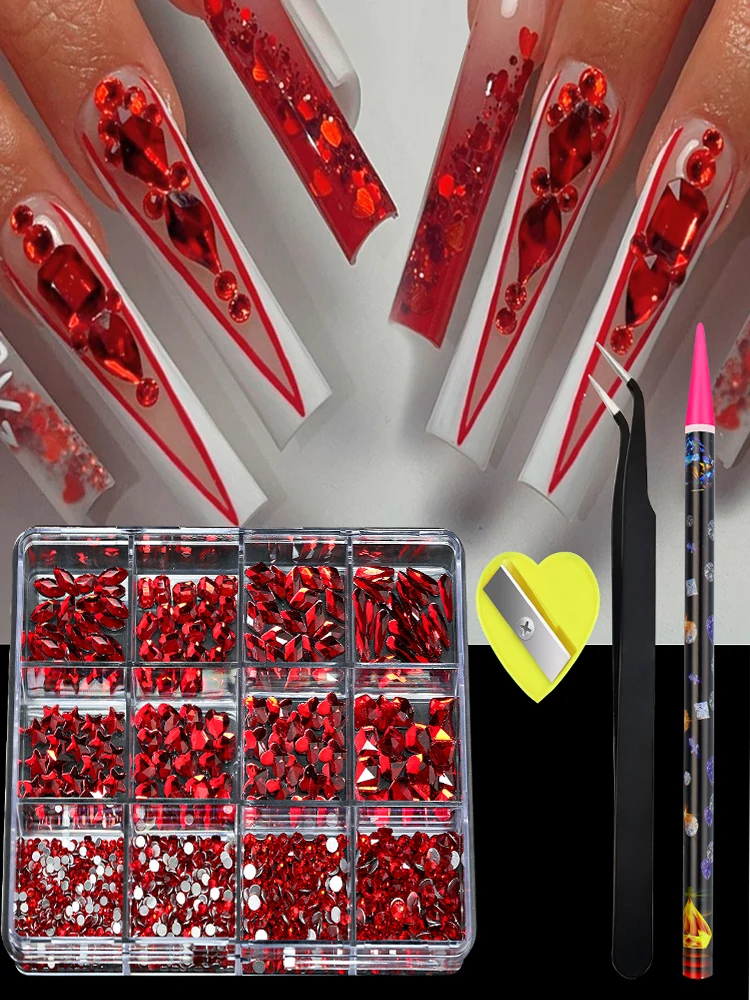Color: Lvory - 12 Grid 3D Nail Alloy Gem Rhinestone Jewelry Charms Heart Crystal Jewelry Stones Supplies For Nails Manicure Accessories Nail Ar