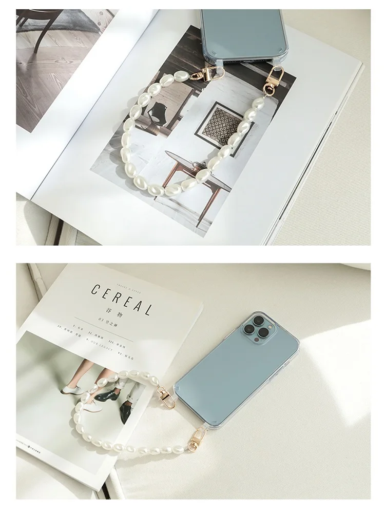 Pearl Bracelet Wrist Chain Phone Case For iPhone 13 12 11 14 15 Pro Max XR X XS Mini 7 8 Plus SE Transparent Hard Acrylic Cover