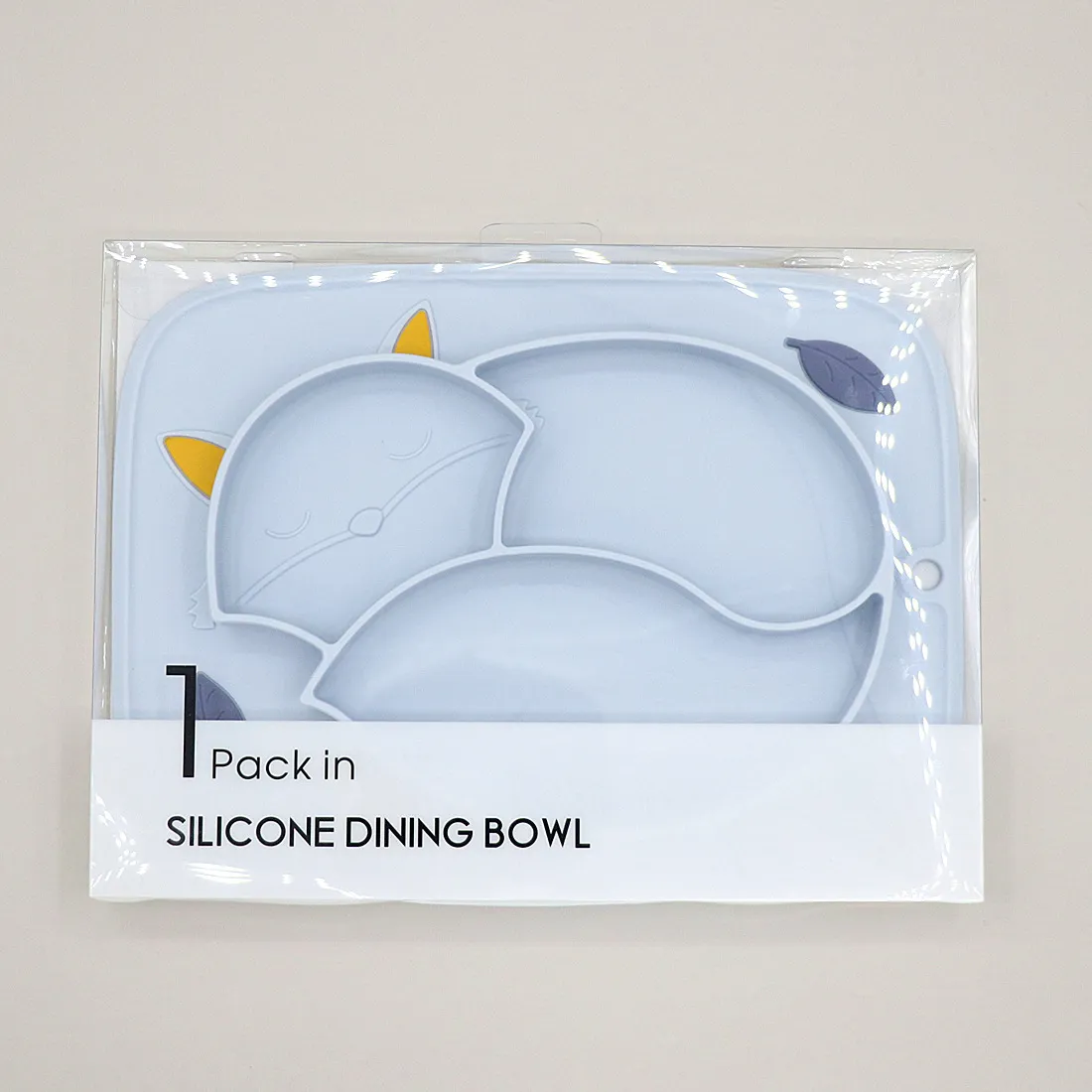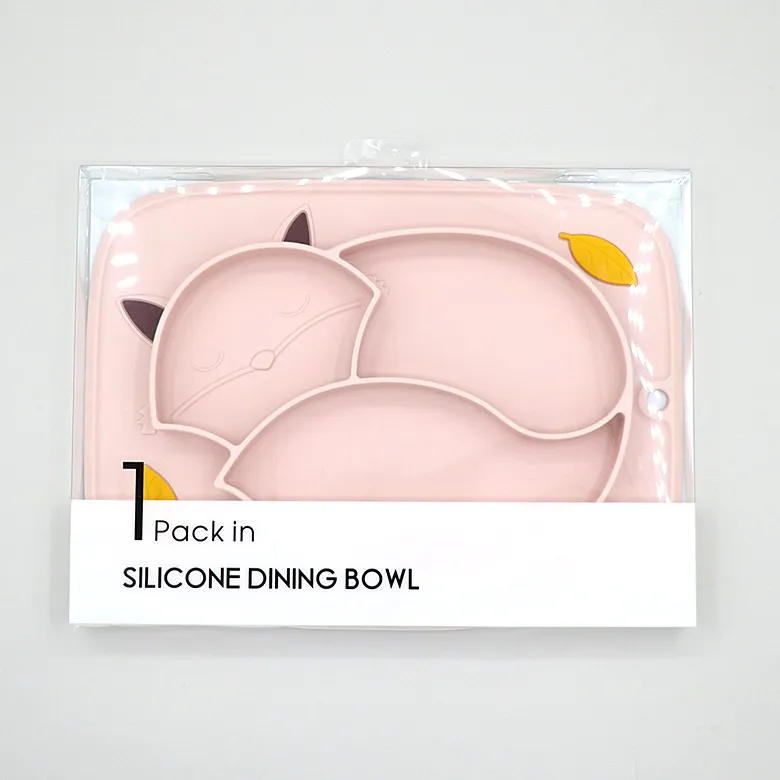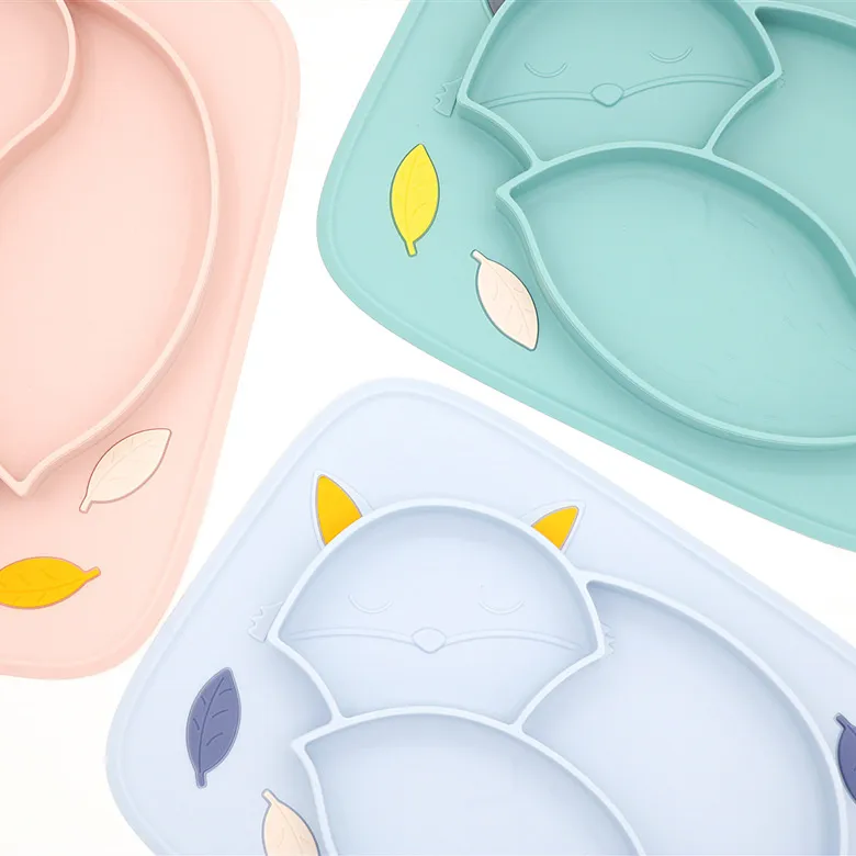 Color Matching Soft Cute Fox Strong Adsorption Platinum Silicone Dinner Plate Integrated Children'S Non-Slip Partitioned Dinner Plate