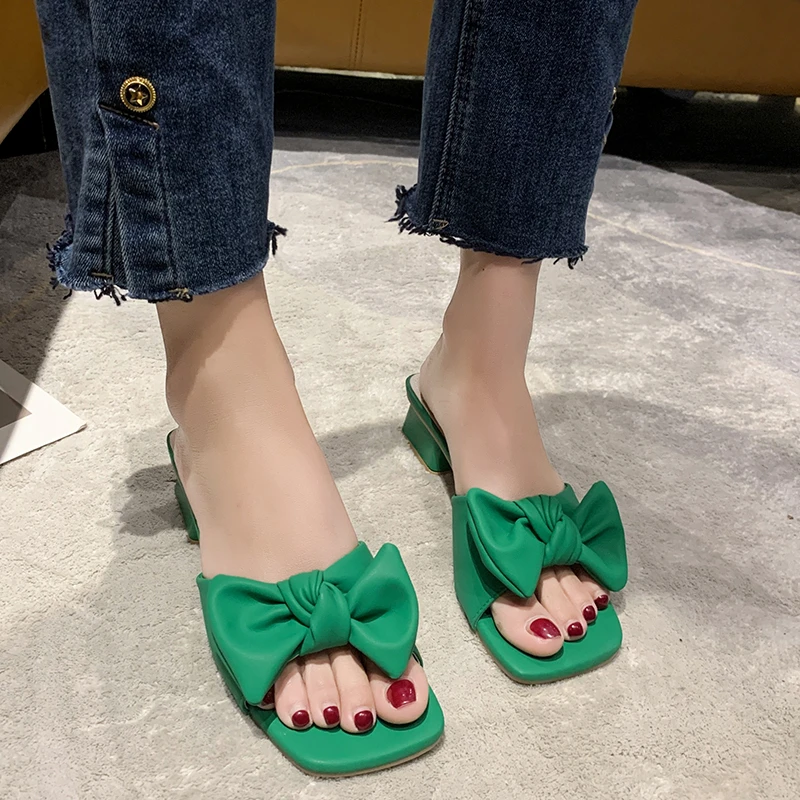 Color: MINT GREEN, Shoe Size: 40 - Large Size Women's Shoes 35-42 Summer Outer Wear Flat Slippers Wide Sandals Slippers Rhinestone Fashion Home Slippers