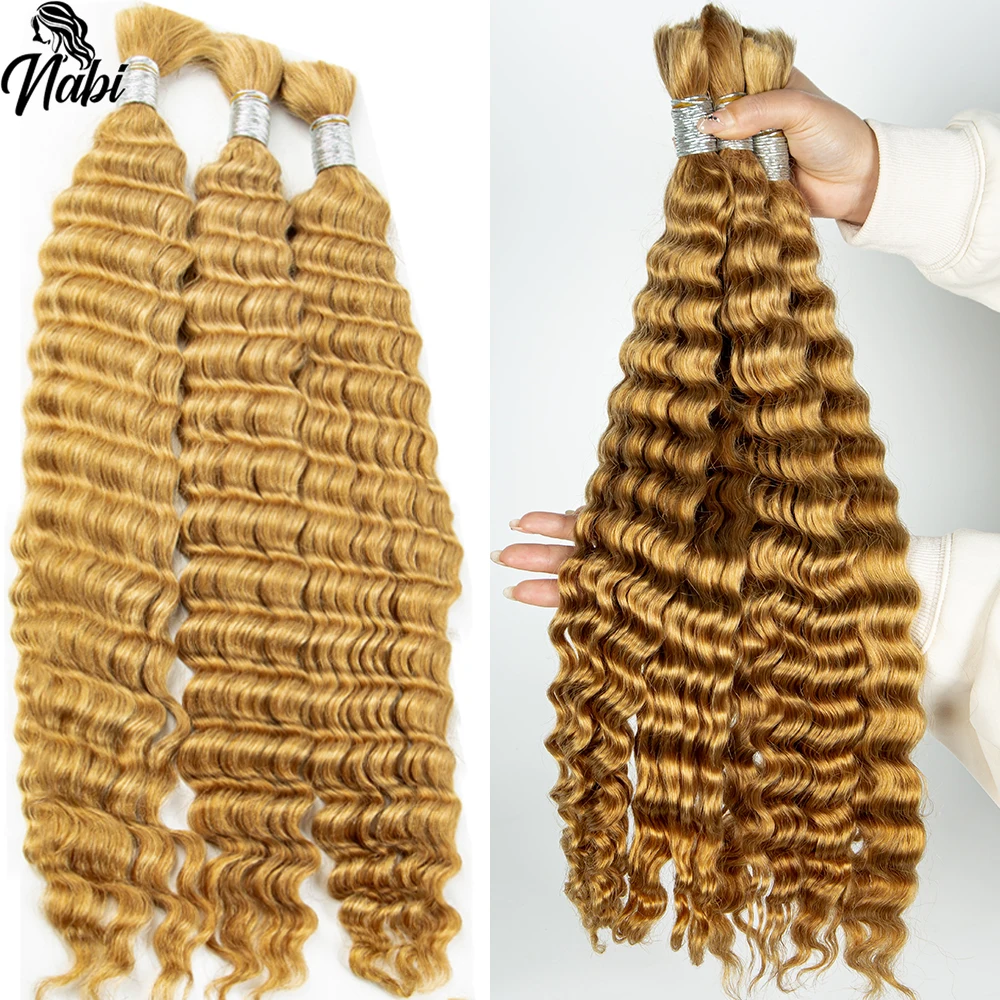 Color: Mocha Brown, Material Grade: virgin hair, Longest Hair Proportion: 30%-55%, Stretched Length: 22INCHES, Bulk Buy: 5pcs/lot - NABI Deep Wave Boho Braiding Hair Bulk 16inches No Weft Human Hair Extension Curly Hair Bundles for Boho Braids