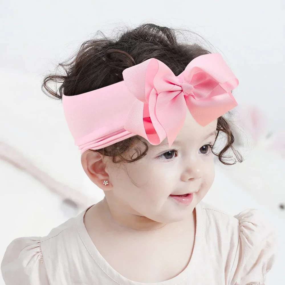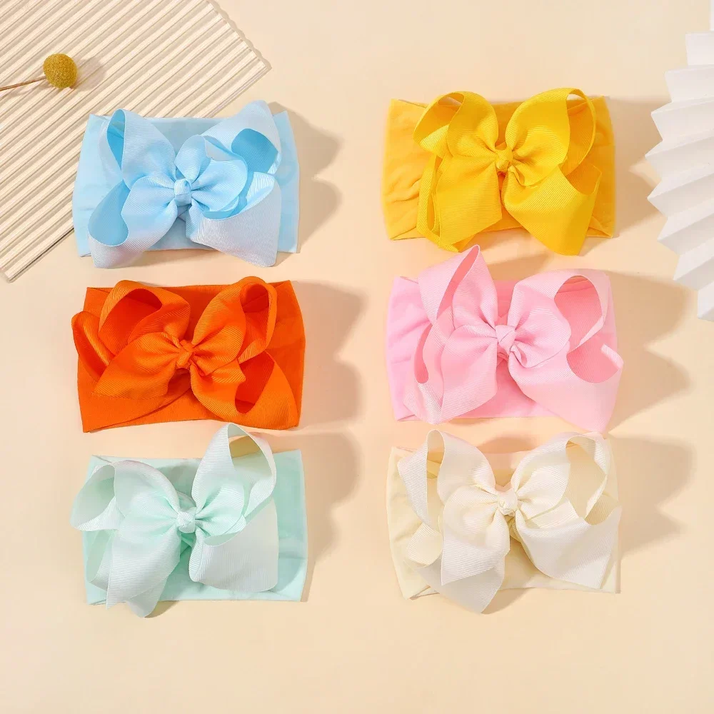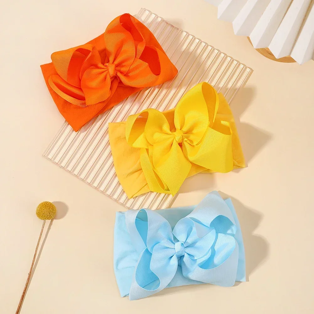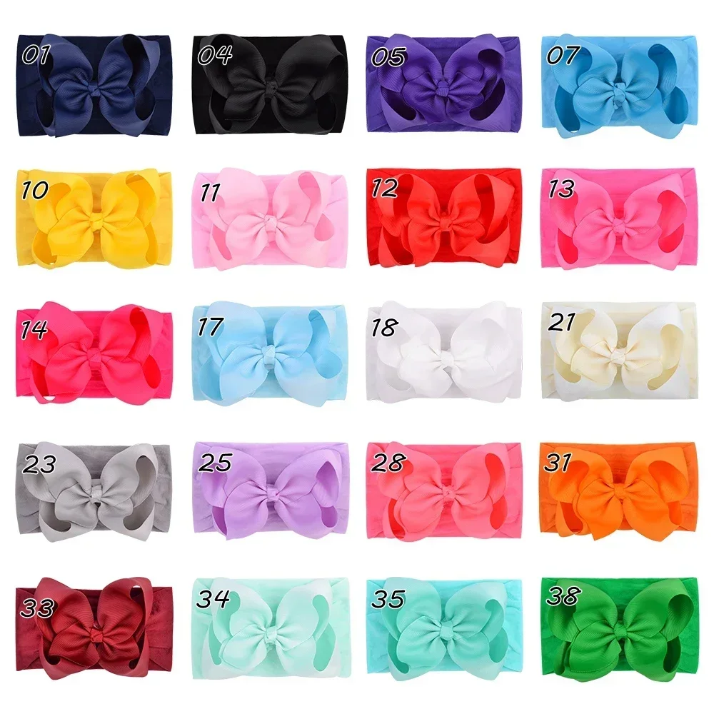 Color: multi - 1pcs Baby Wide Ribbon Nylon Turban Girls Big Bows Hair Accessories Child Headband Elastic Hair Bands Ribbon Bows Infant Headwear