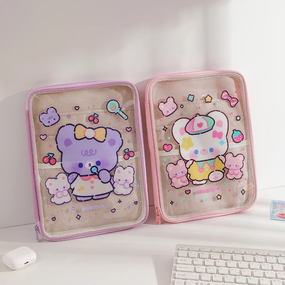 Cartoon PVC Stationary Organzier Pouch Big Capacity Storage Pens Eraser Students Pencil Bags