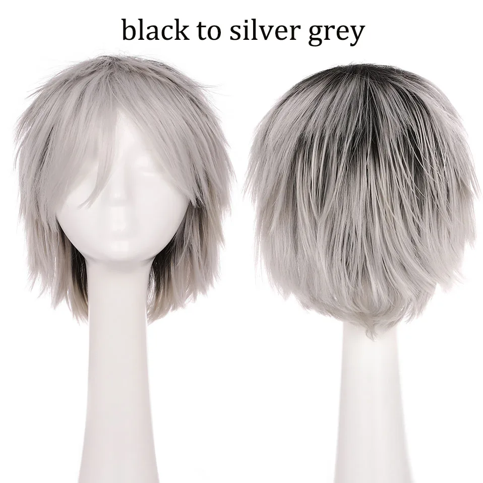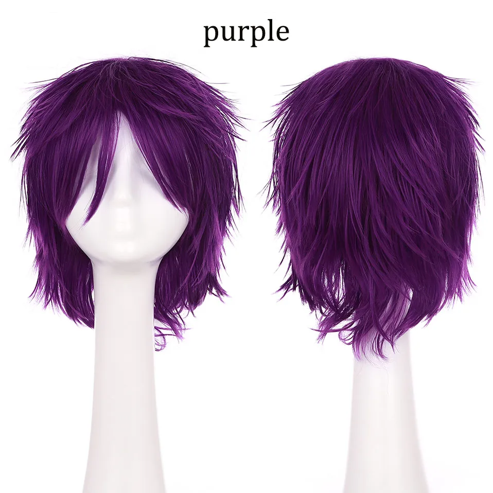 Color: Multi Color, Ships From: CHINA, Stretched Length: 8inches - S-noilite Synthetic Short Wig Blue Brown Black Women Men Cosplay Costume Party Head Wigs Hair