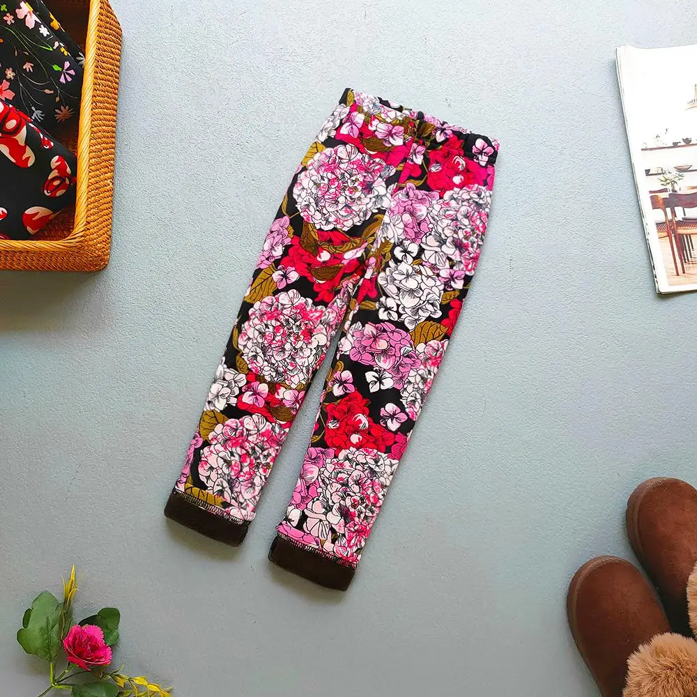 Color: MULTI, Kid Size: 9 - Autumn Winter Print Flowers Thick Warm Kids Toddler Baby Girls Leggings Children's Pants