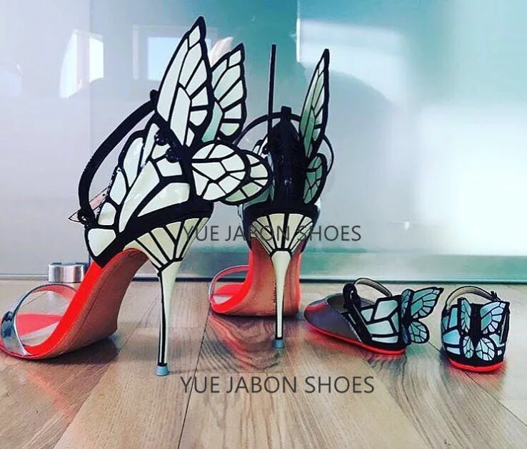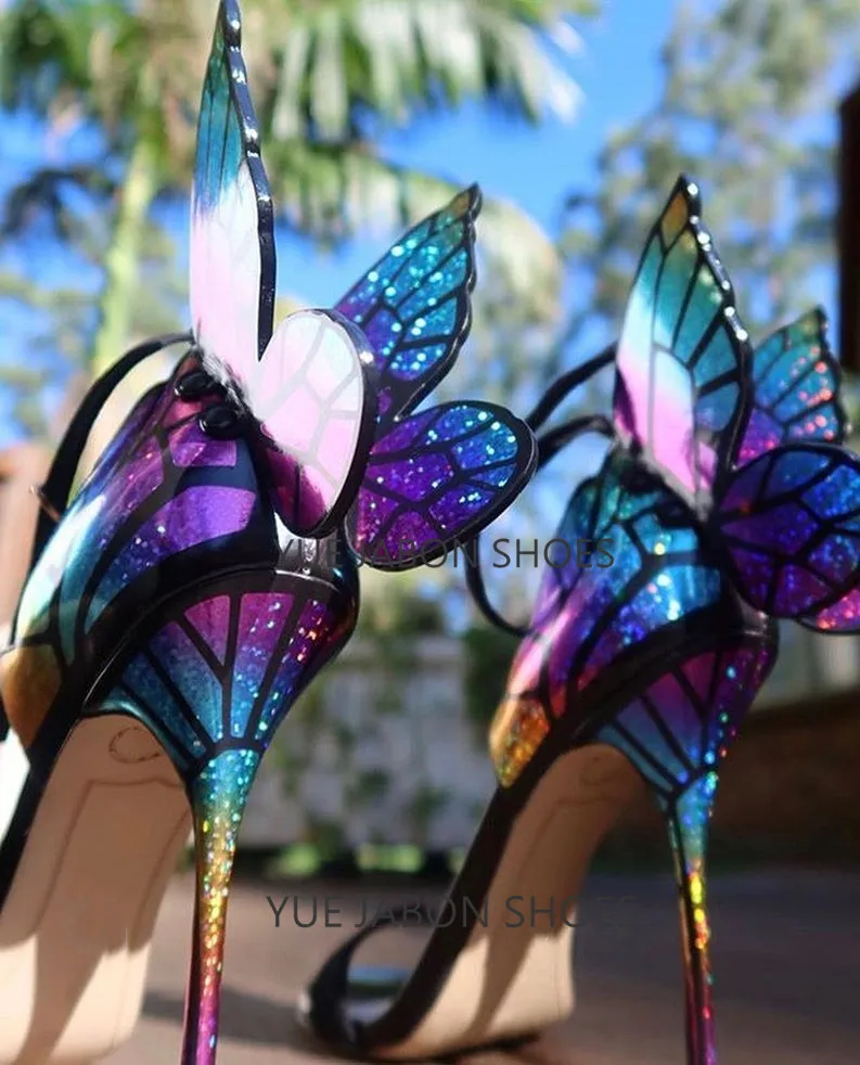 Color: multi, Shoe Size: 7.5 - Women Summer Sandals Fashion Embroidered Satin Butterfly High Heeled Footwear Adjustable Ankle Strap Shoes Women high heels