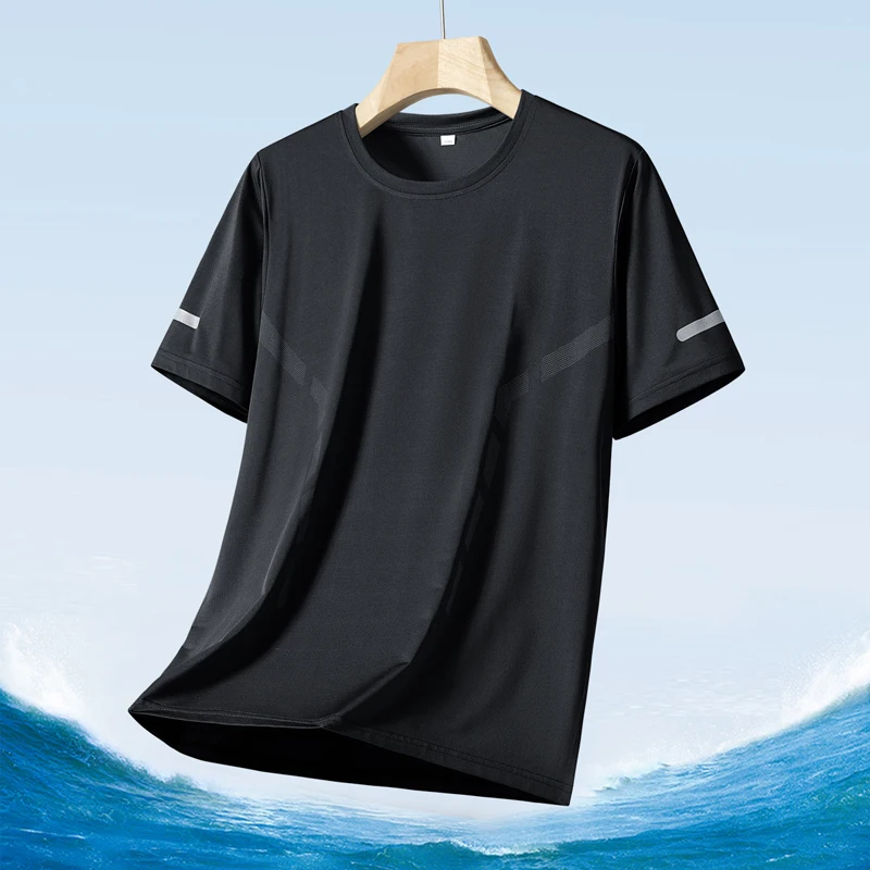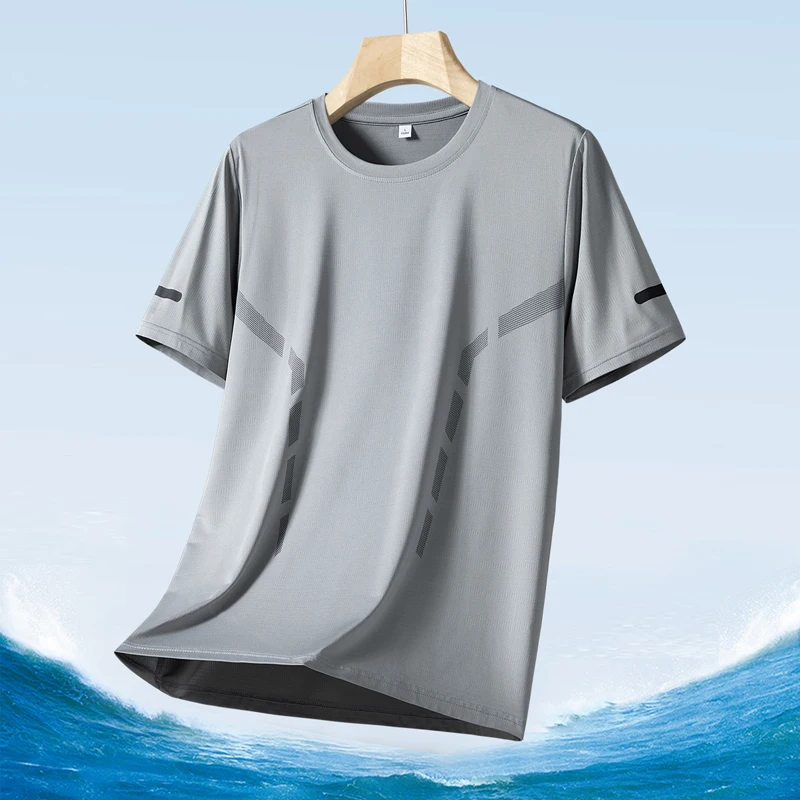 Color: MULTI, Size: L - Men's Silk Ice Round Collar T-shirt, Simple Running Fitness Suit, Breathable Thin T-shirt, Quick Dry T-shirt, Summer
