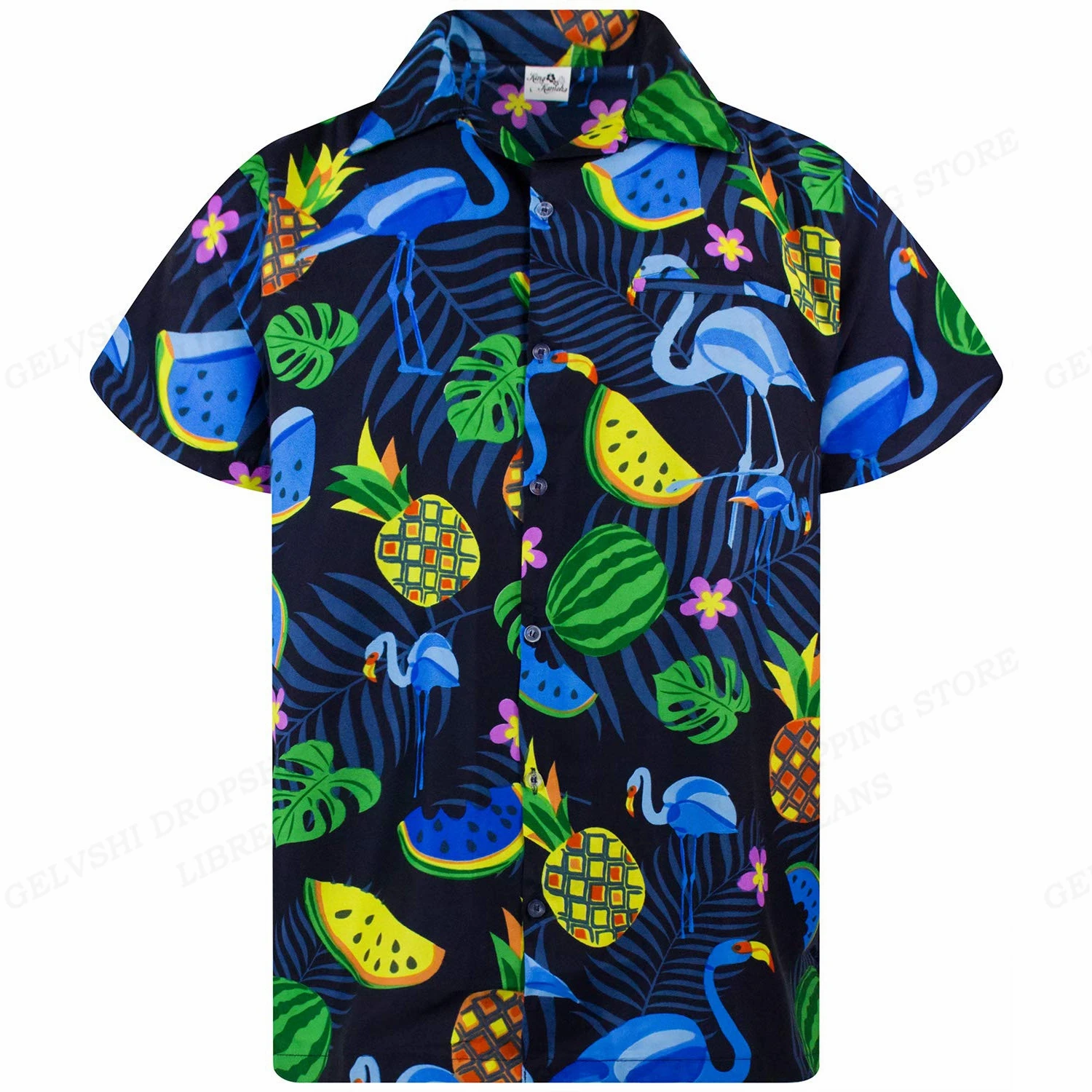 Color: MULTI, Size: XXXL - Flamingo Hawaiian Shirts Beach Summer Men's Shirt Tropic Leaf 3D Print Shirts Men Women Fashion Blouse Short Sleeve Vocation