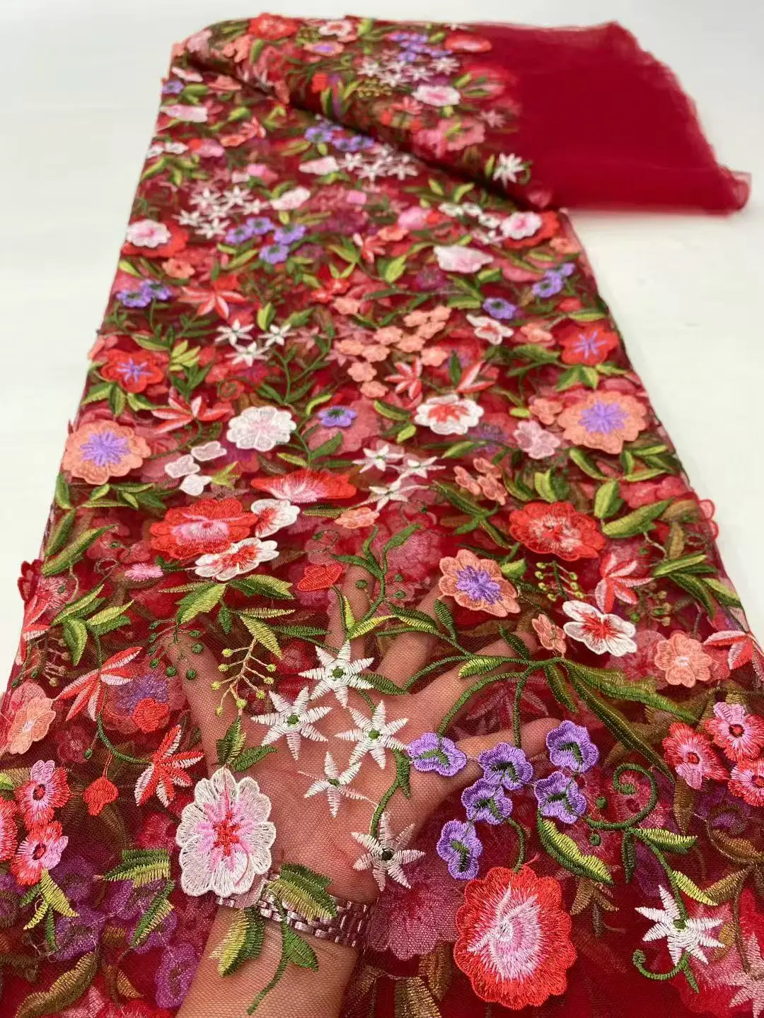 Color: MULTI, Width: 120cm, Length: 5 yards - Purple 3D Flowers French Latest Nigerian Lace Fabrics 2025 High Quality Net African Lace with Beads for Wedding Party 2025