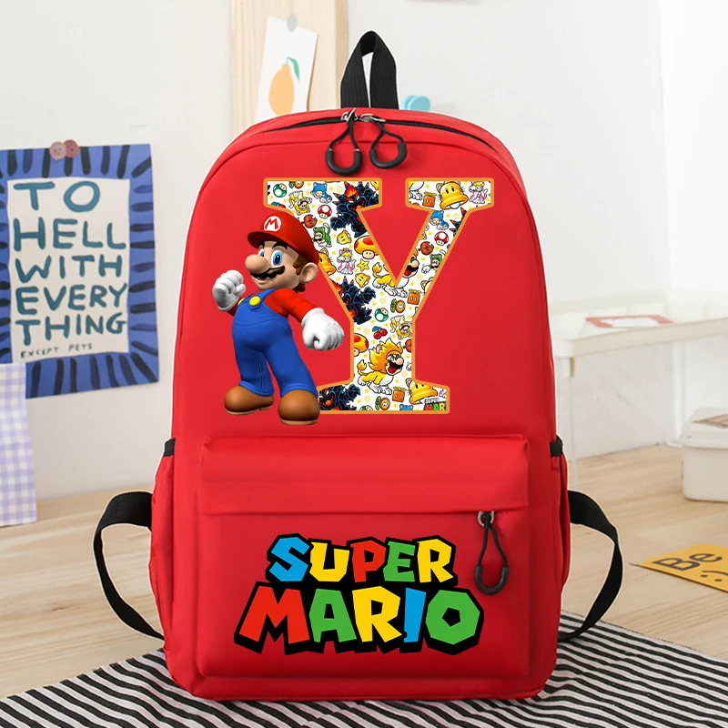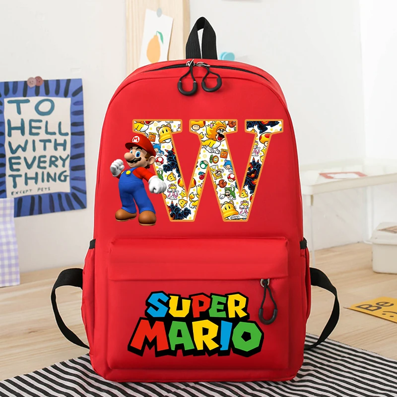Color: Multicolor, Size: 12cm - New Super Mario Bro School Bag Cartoon Letter Printed Children Backpack Boys Girls School Backpacks Children's Birthday Gifts
