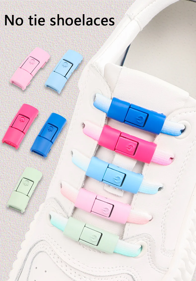 Switches Colorful Metal Buckle No Tie Shoe Laces Press Lock Shoelaces Without Ties Elastic Flat Shoelace Sneaker Kids Adult