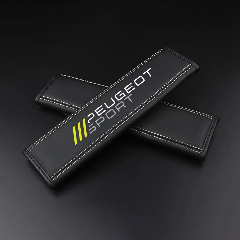 Color Name: black - 2Pcs Car Seat Belt Leather Safety Belt Shoulder Covers For Peugeot 206 307 308 3008 207 208 407 508 2008 5008 107 106 205 4008