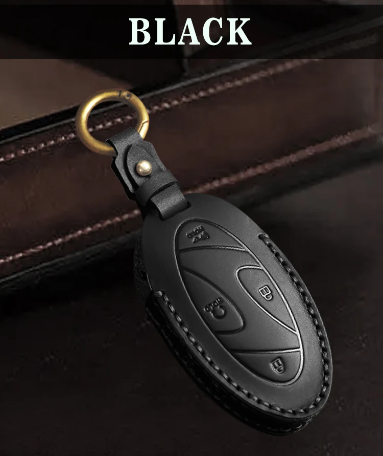 Color Name: Black - Car Leather Key Case Cover Holder For Hyundai Ionic 6 Grandeur GN7 Kona Ev New Grand Prix 5Buttons Romote Key 2023 Car Supplies