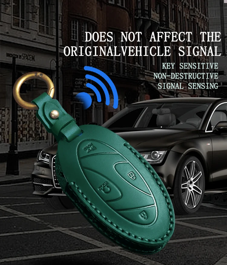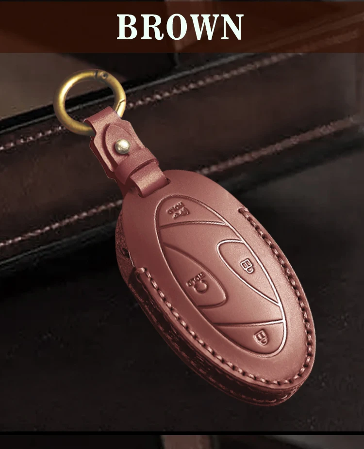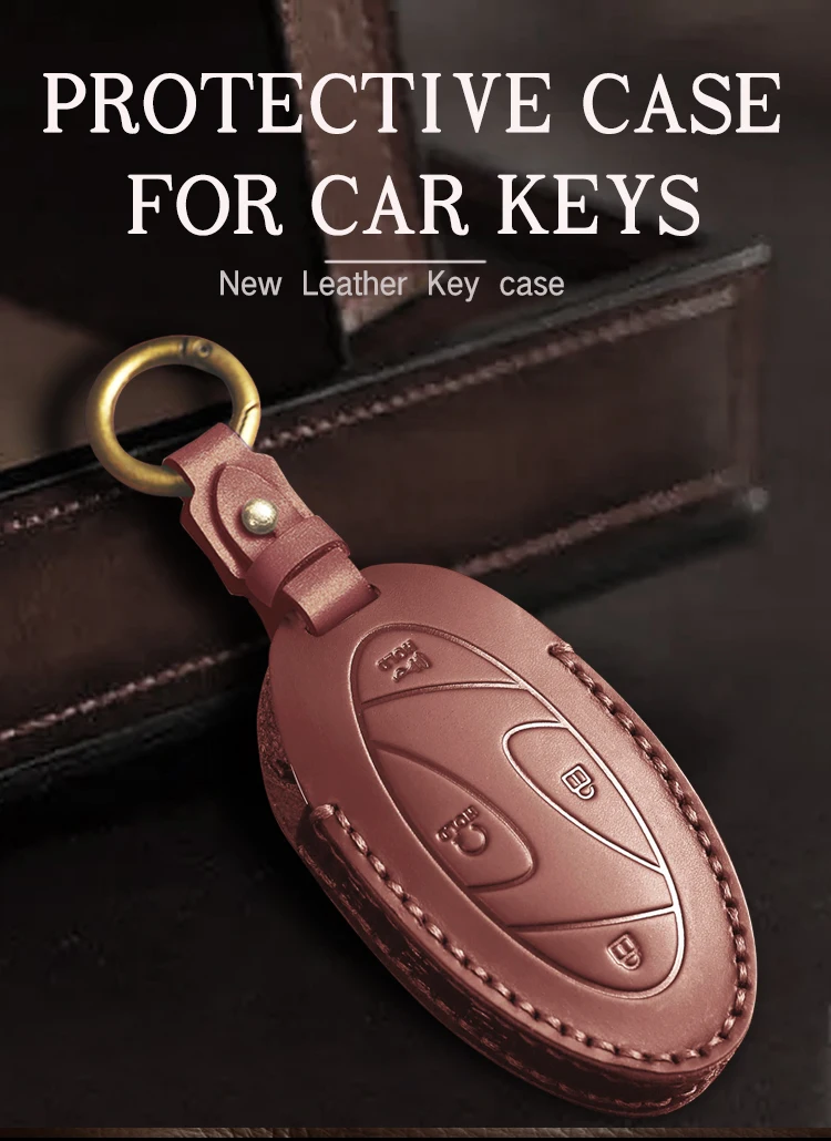Car Leather Key Case Cover Holder For Hyundai Ionic 6 Grandeur GN7 Kona Ev New Grand Prix 5Buttons Romote Key 2023 Car Supplies