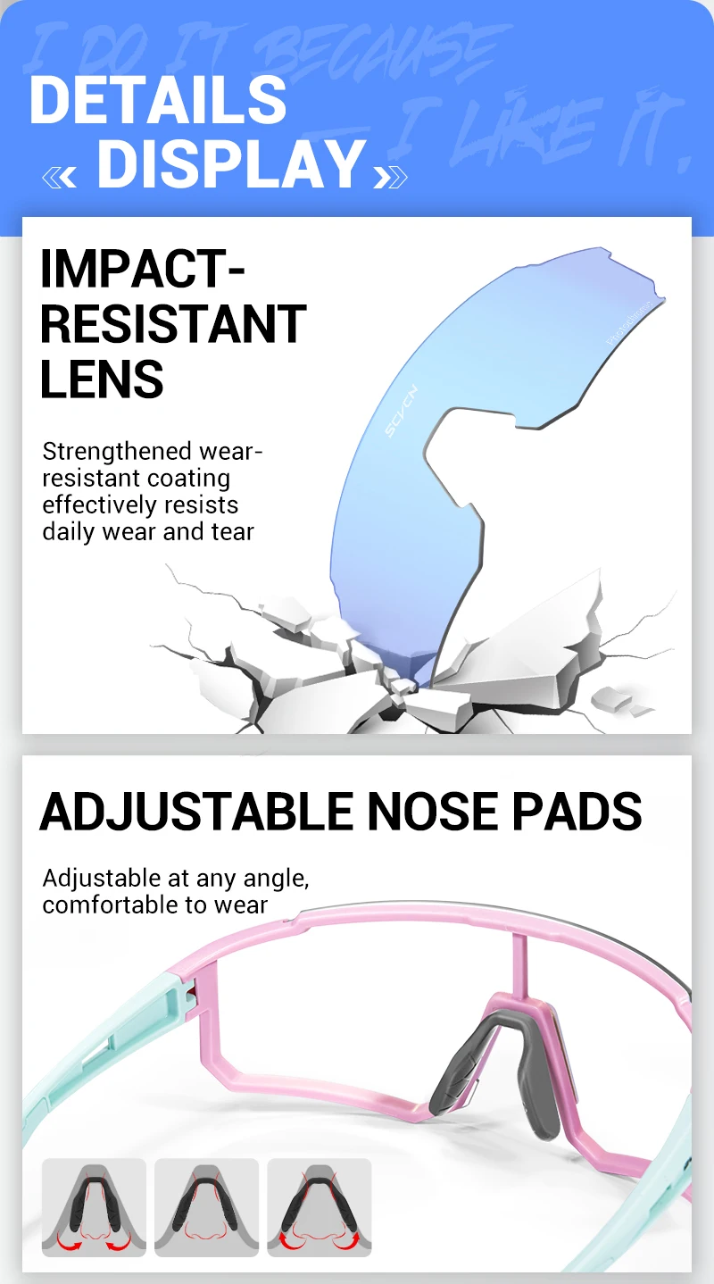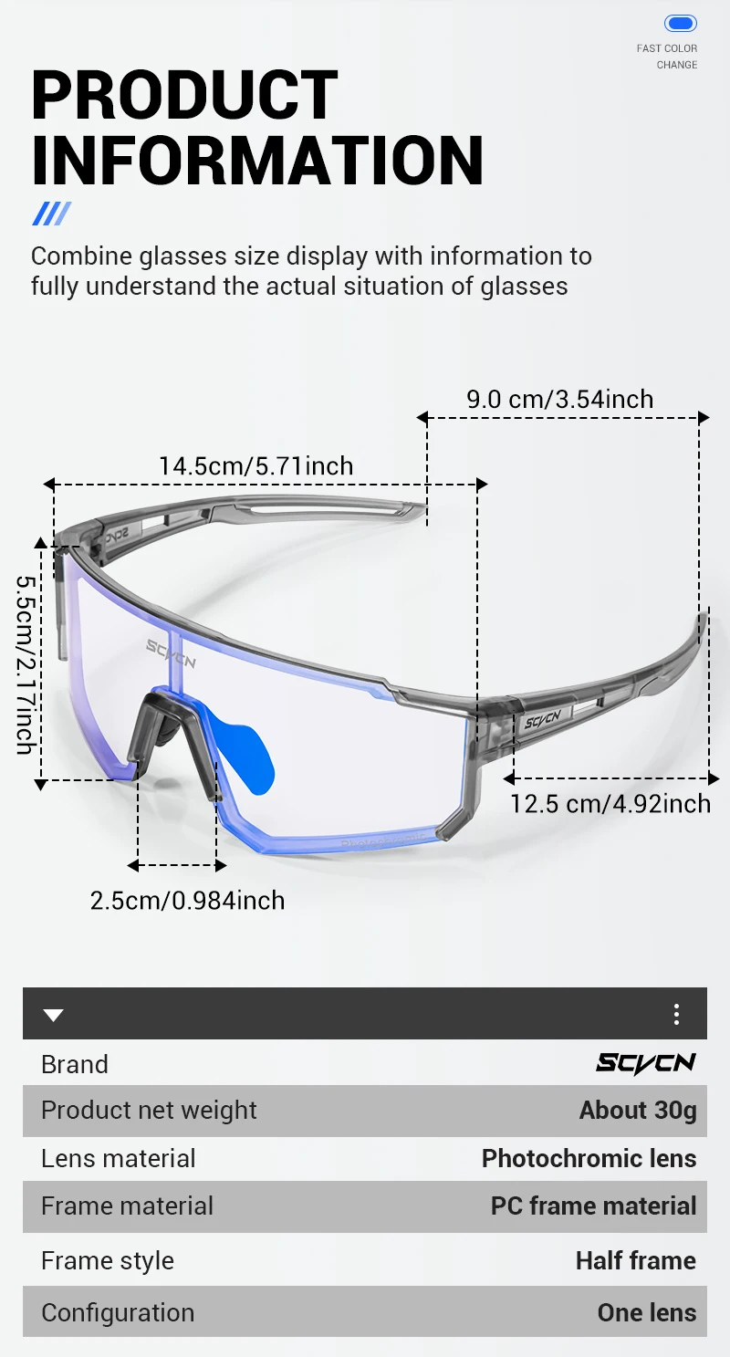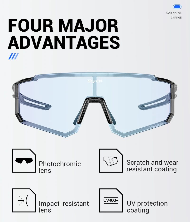 Color Name: Blue - SCVCN Color Photochromic Cycling Glasses Outdoo Fashion Sports Sunglasses Men MTB Cycling Sunglasses Women Road Bike Glasses