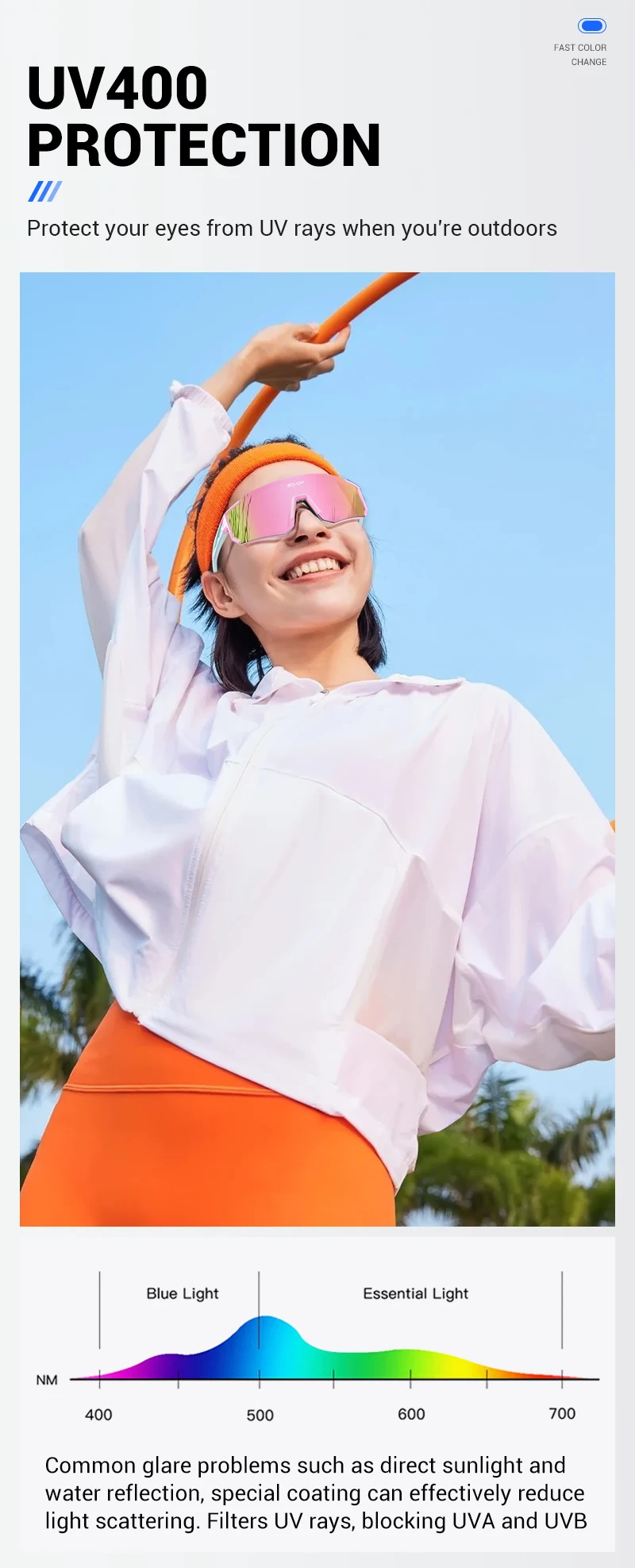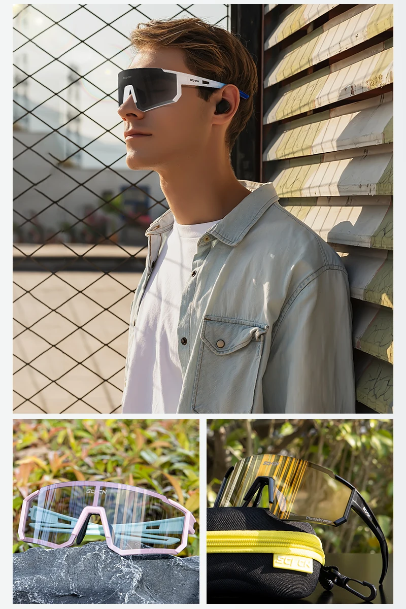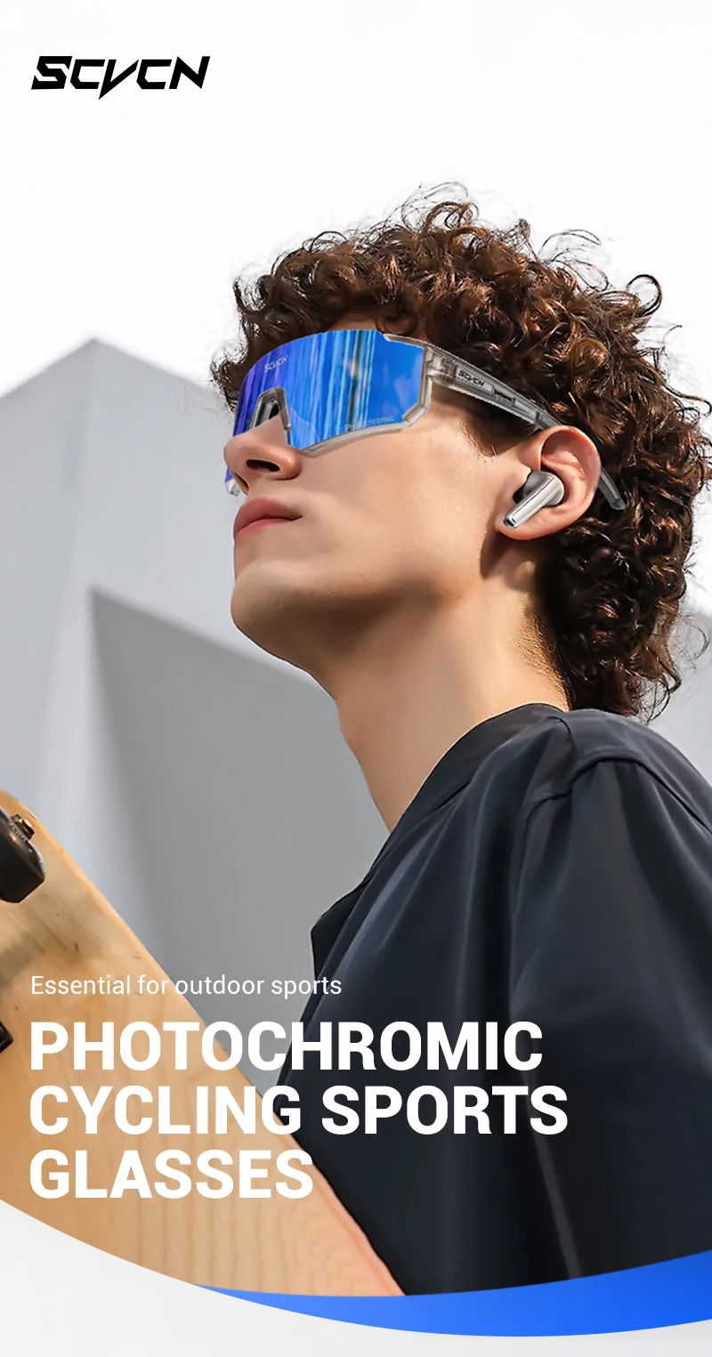 Color Name: Blue - SCVCN Color Photochromic Cycling Glasses Outdoo Fashion Sports Sunglasses Men MTB Cycling Sunglasses Women Road Bike Glasses