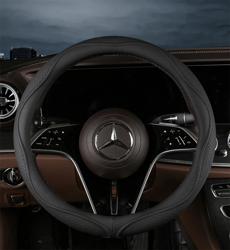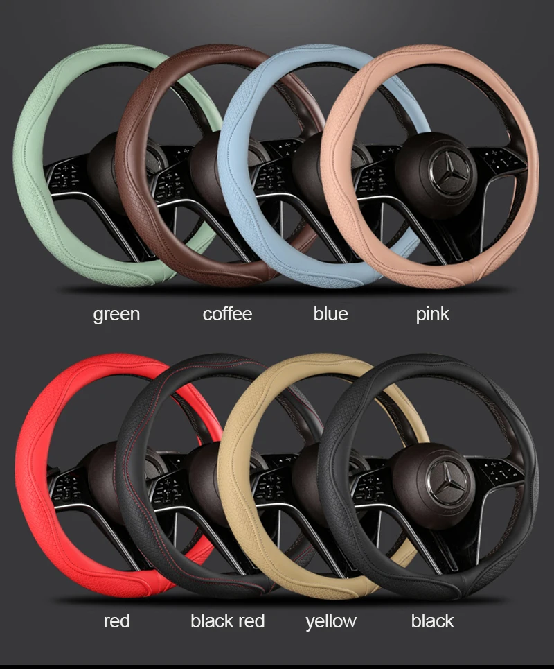 Color Name: GRAY - Car Anti-Slip Leather Steering Wheel Cover Universal Car Steering Wheel Protective Cover Fashion Style 38cm Sport Style Cool
