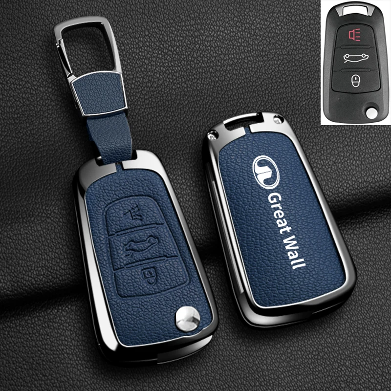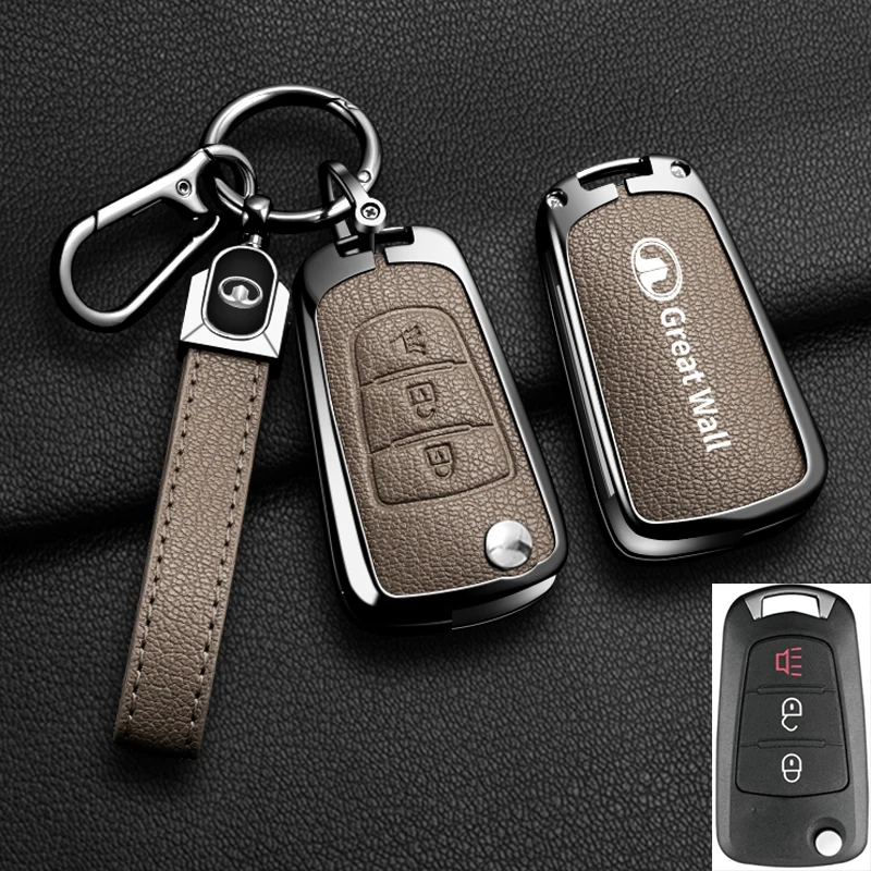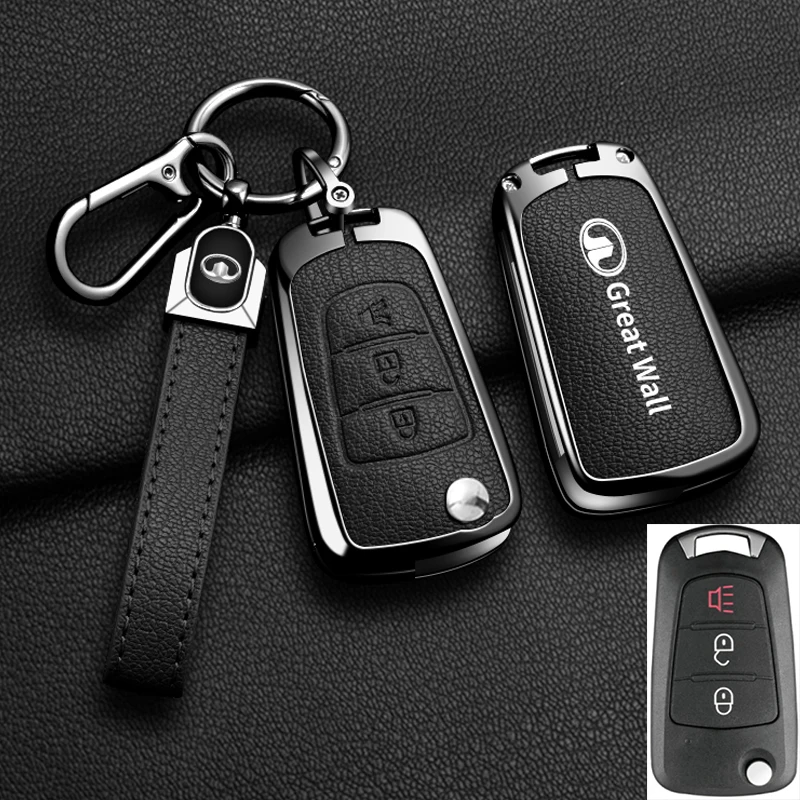 Color Name: green - Alloy Car Key Case Cover For Great Wall Haval Hover Wingle 5 6 H3 H5 H6 H1 H3 C30 C50 M4 3Buttons Shell Bag Protector Keychain
