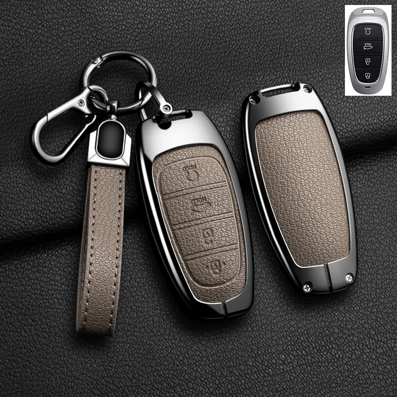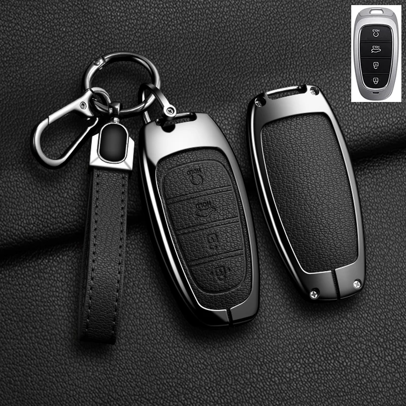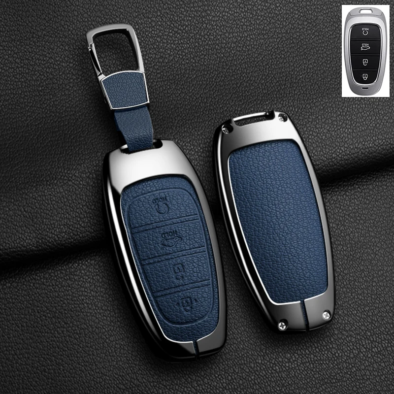 Color Name: green - New Auto Alloy Car Key Case Cover Fob for Hyundai Solaris Sonata Hybrid NEXO NX4 New Grand Santa Fe Tucson 2020-2024 Accessories