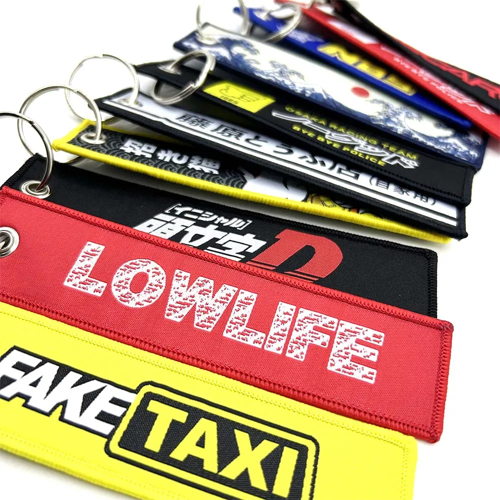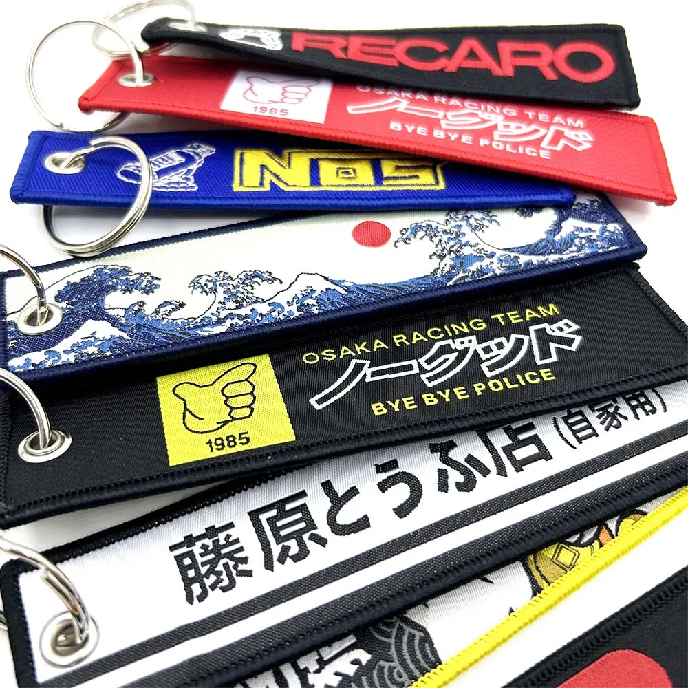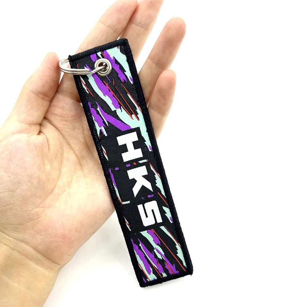 Color Name: Pink - JDM HKS Keychain Embroidered Woven Personality Fashion Cloth ADVAN Key Chain Car Motorcycle Key Rings Key Holder Pendant Nos