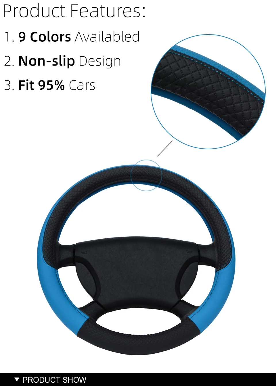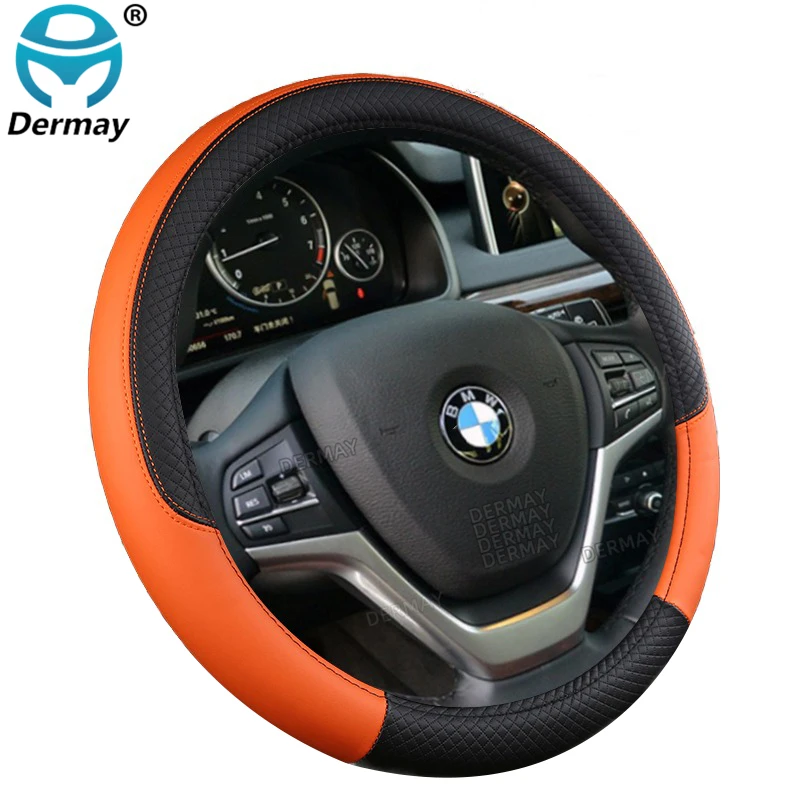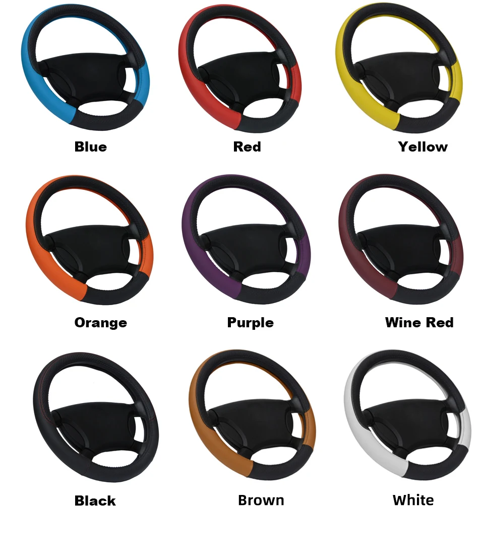 Color Name: PURPLE - 9 Color Sport Auto Steering Wheel Covers Anti-Slip Leather Car Steering-wheel Cover Car-styling Anti-catch Holder Protor