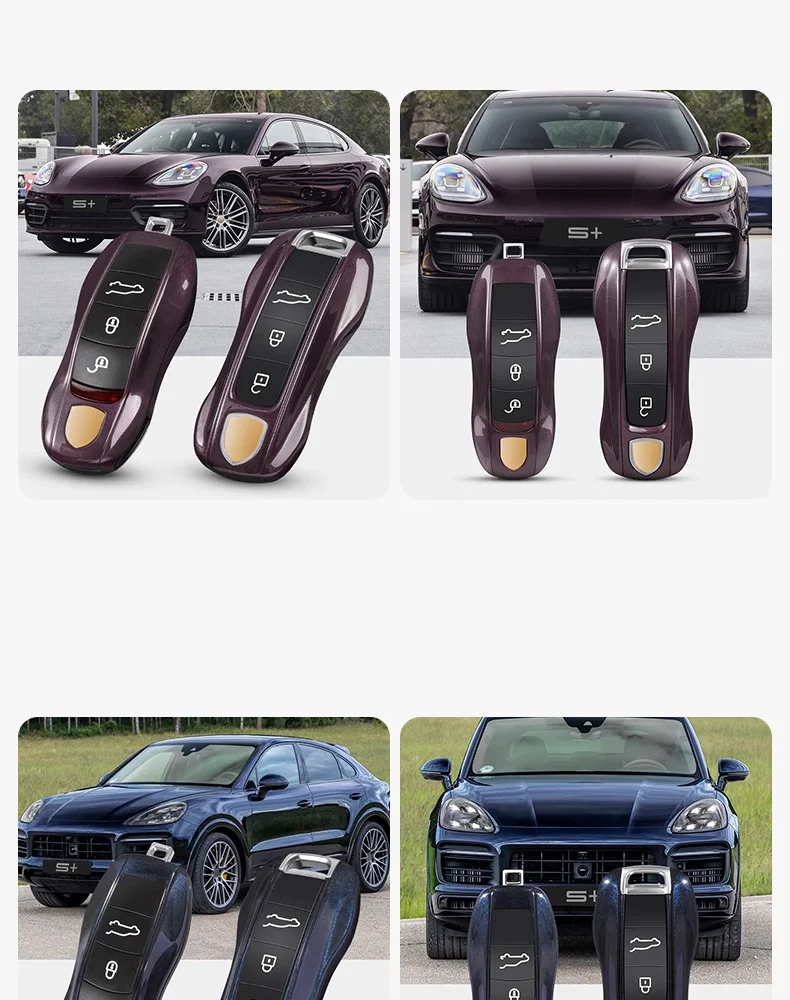 Color Name: PURPLE - For Porsche Cayenne 9ya 9yb Panamera 971 911 Targe Taycan Macan 95b Cayman 718 Boxster 2014-2025 Car Remote Smart Key Case Cover